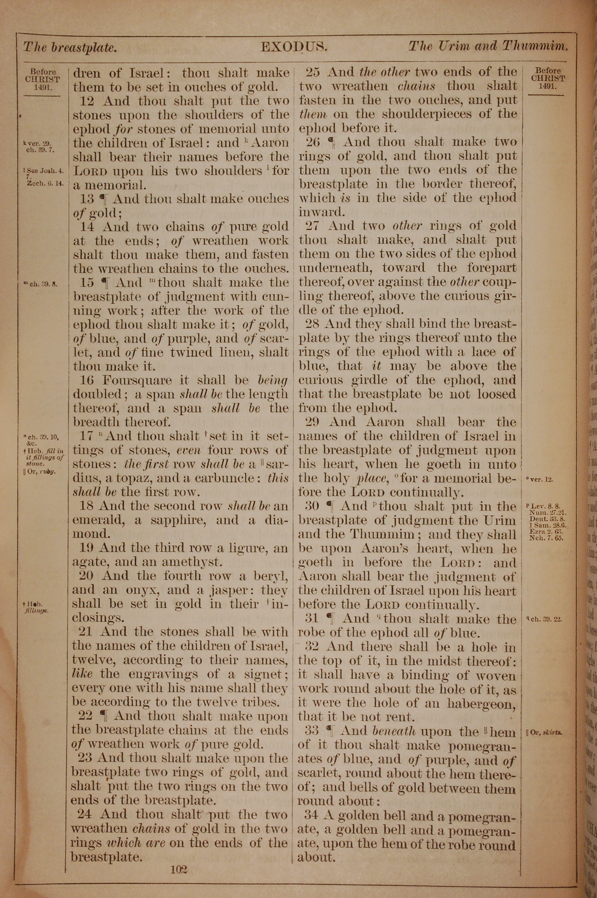 1882年Holy Bible 出埃及記 28 章 12 節到 28 章 34 節