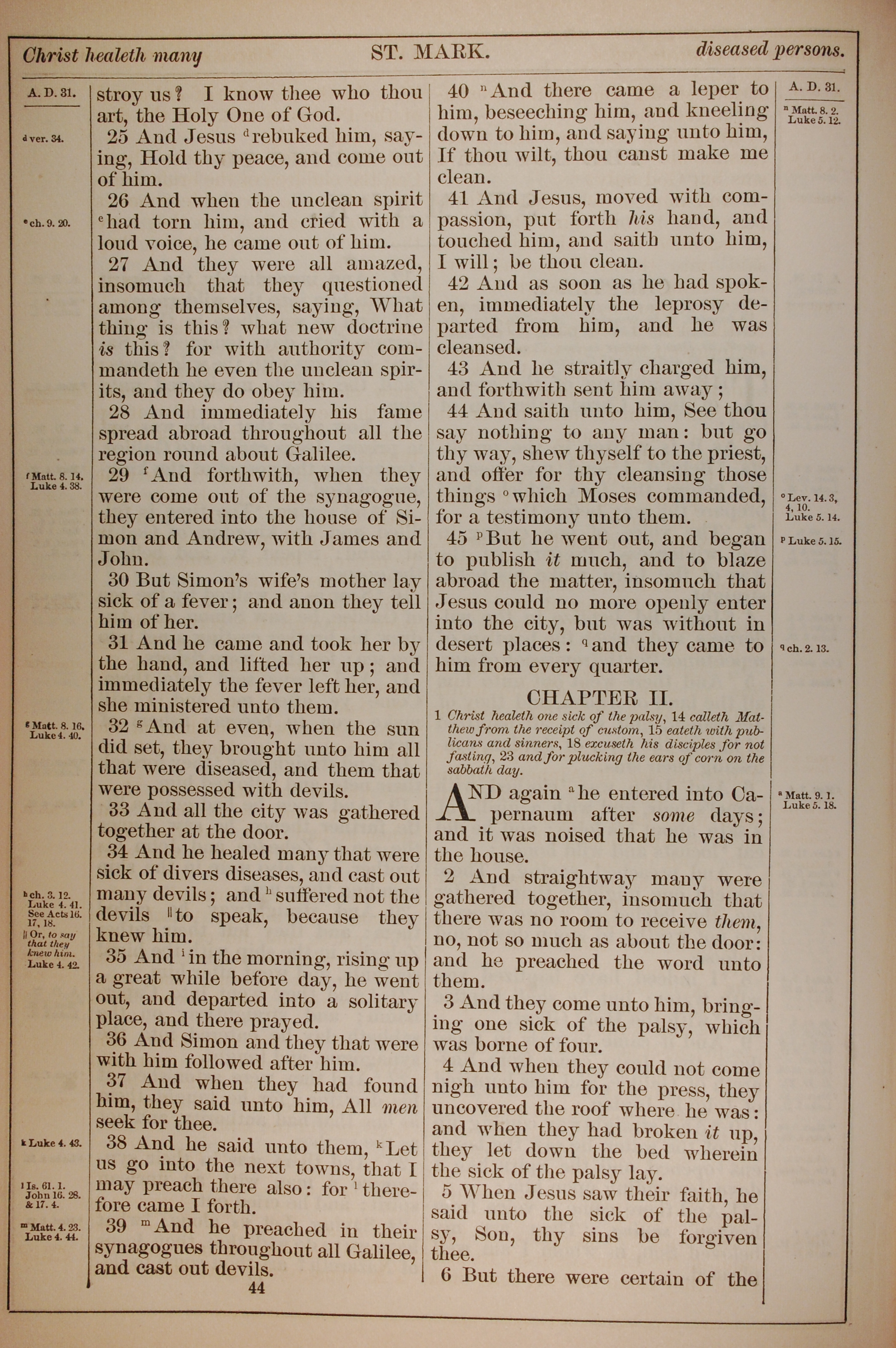 1882年Holy Bible 馬可福音 1 章 25 節到 2 章 6 節