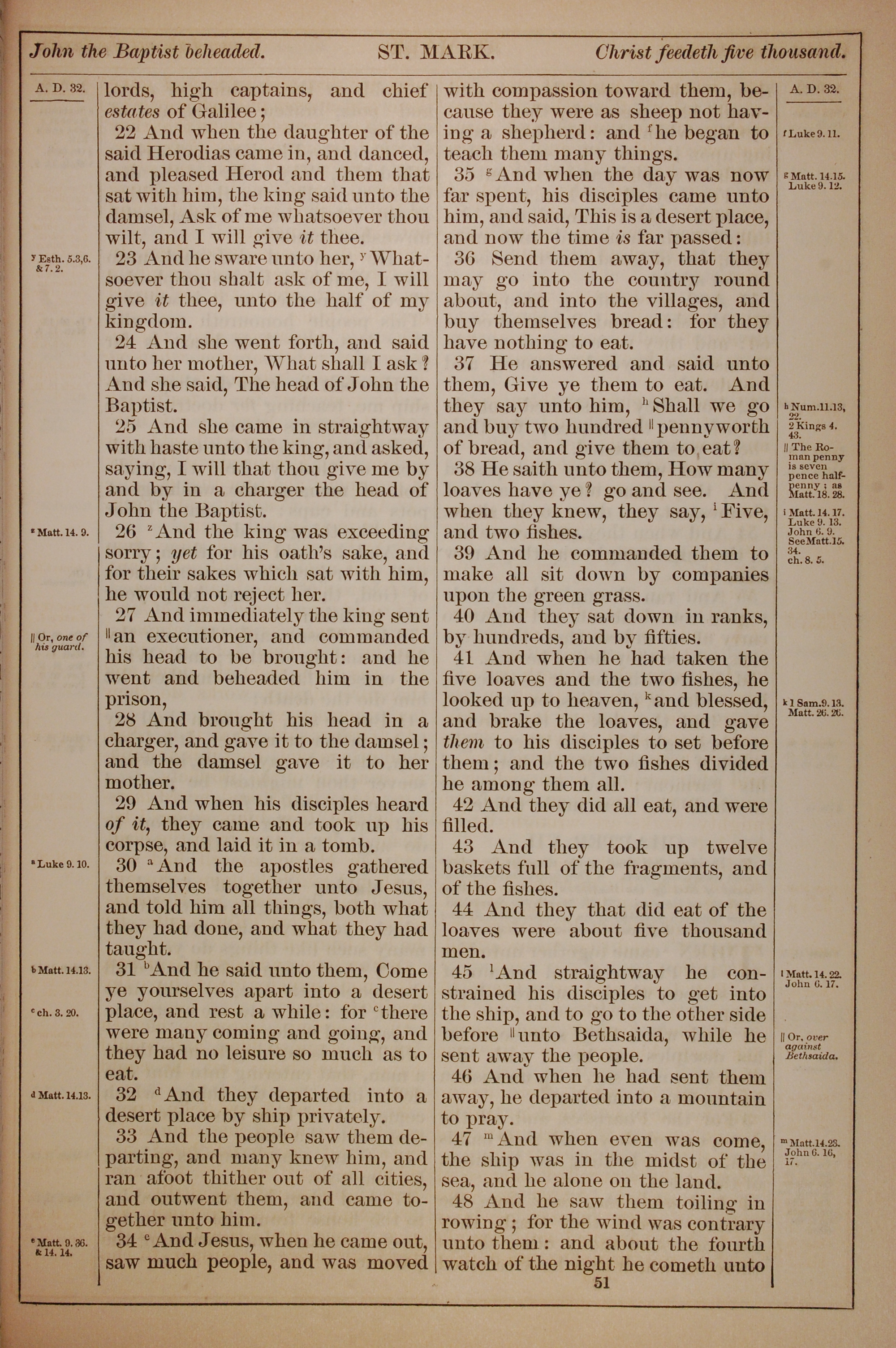 1882年Holy Bible 馬可福音 6 章 22 節到 6 章 48 節