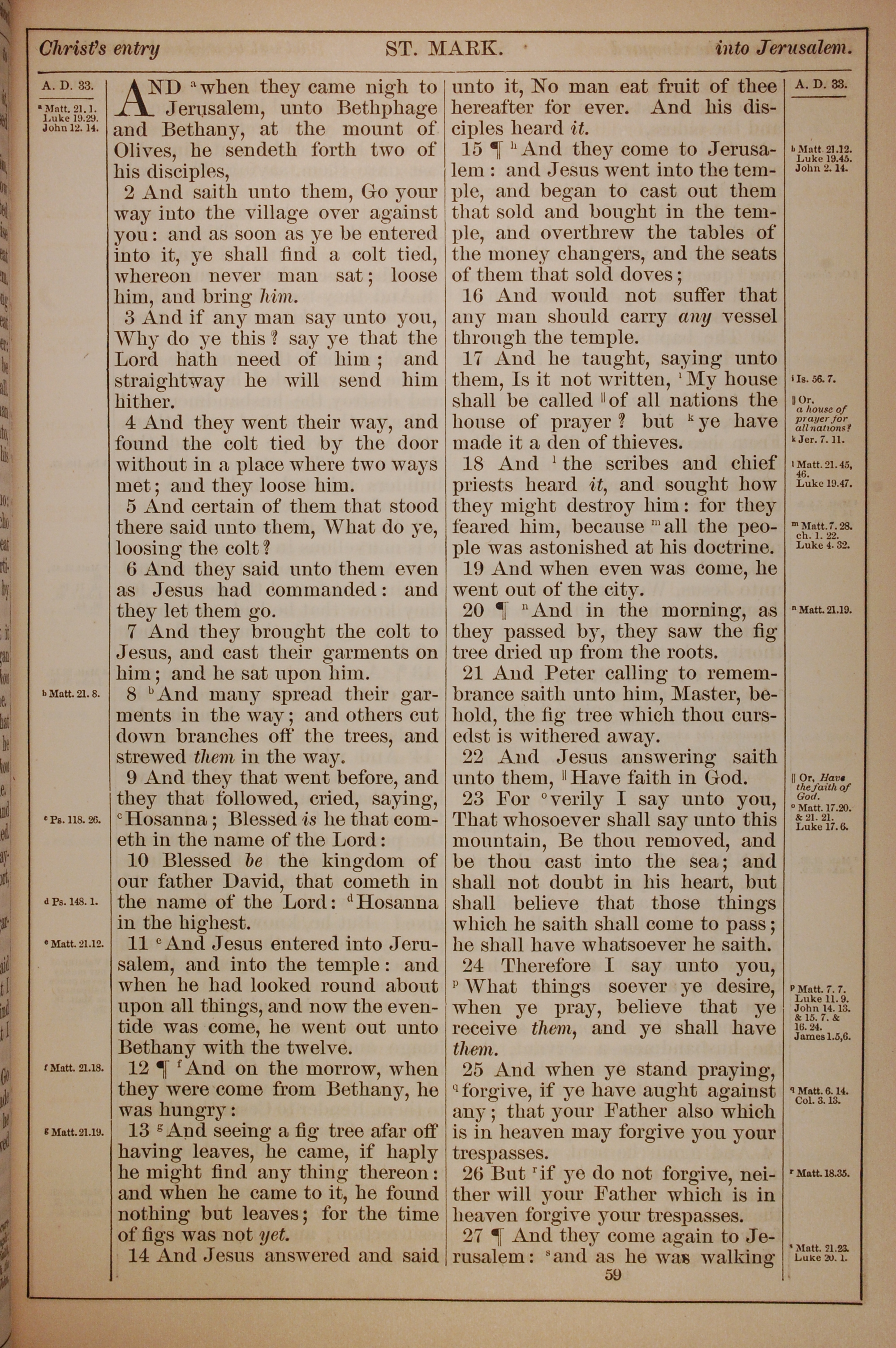 1882年Holy Bible 馬可福音 11 章 1 節到 11 章 27 節