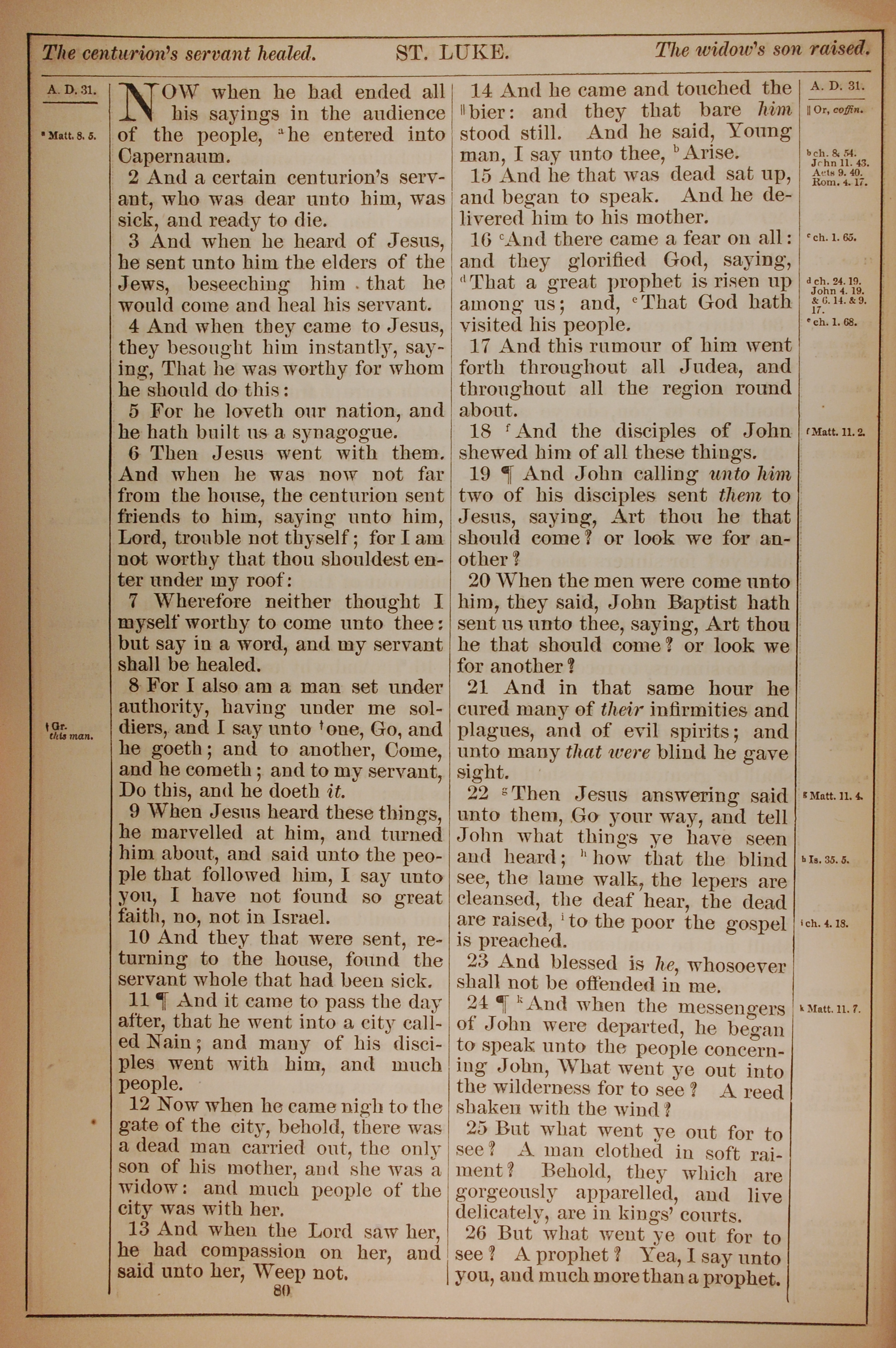1882年Holy Bible 路加福音 7 章 1 節到 7 章 26 節