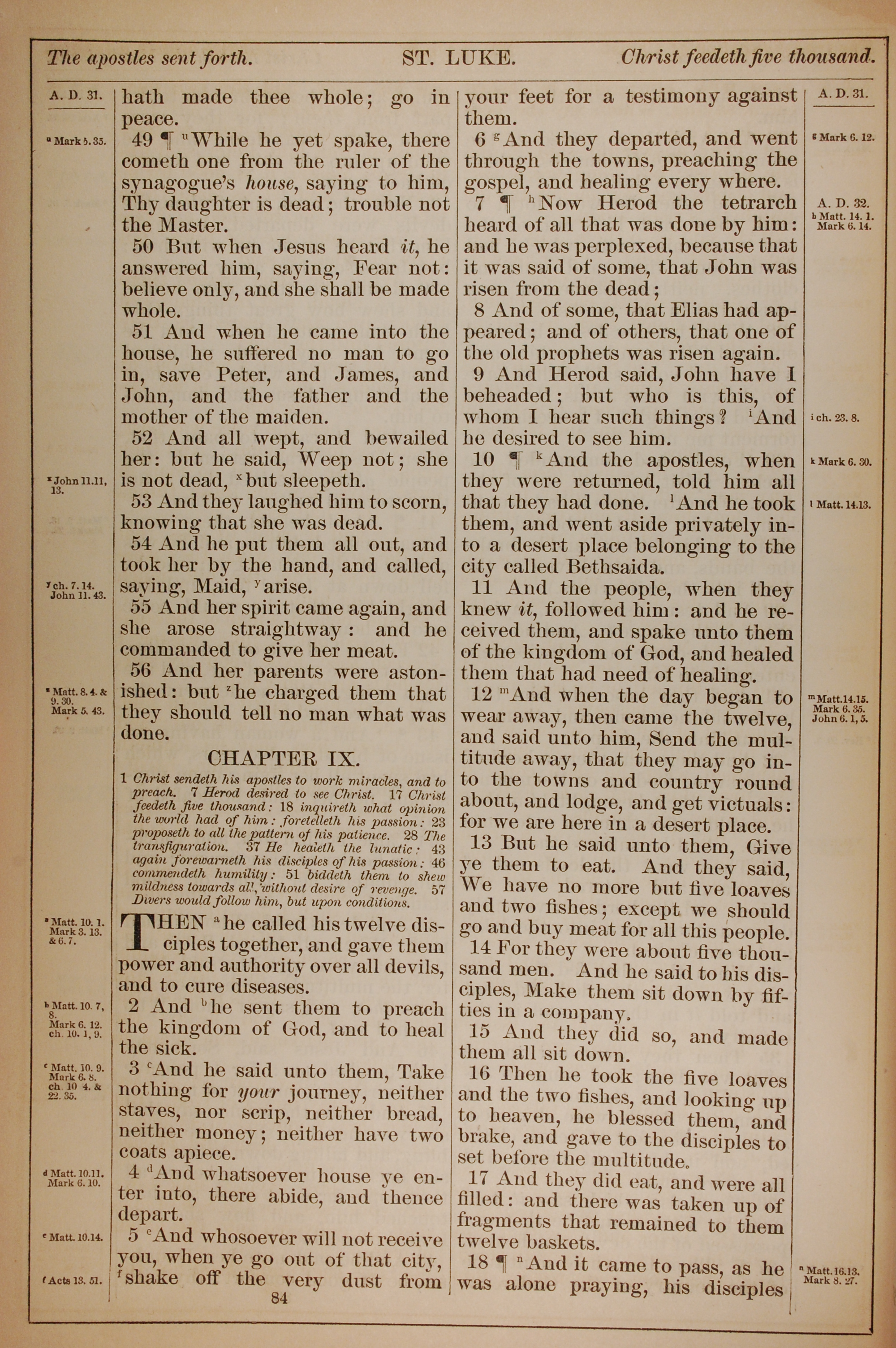 1882年Holy Bible 路加福音 8 章 49 節到 9 章 18 節