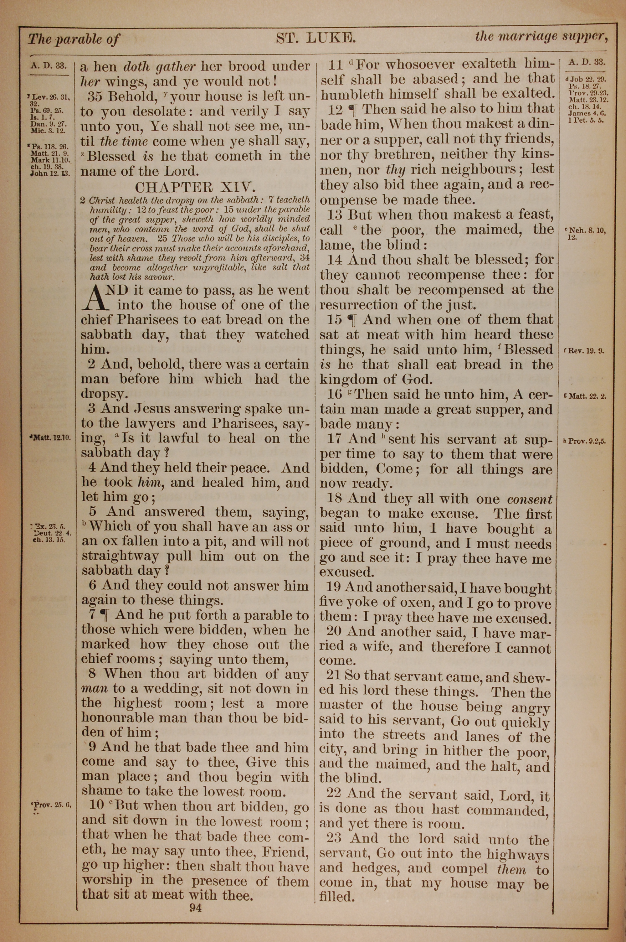 1882年Holy Bible 路加福音 13 章 35 節到 14 章 23 節