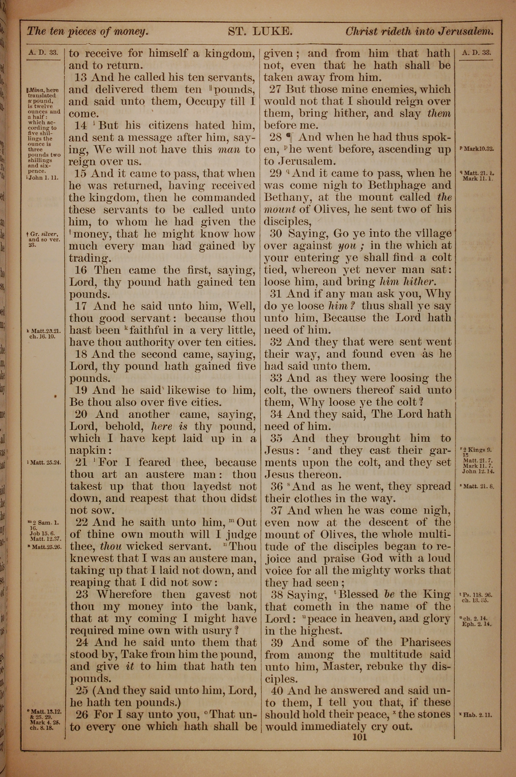 1882年Holy Bible 路加福音 19 章 13 節到 19 章 40 節