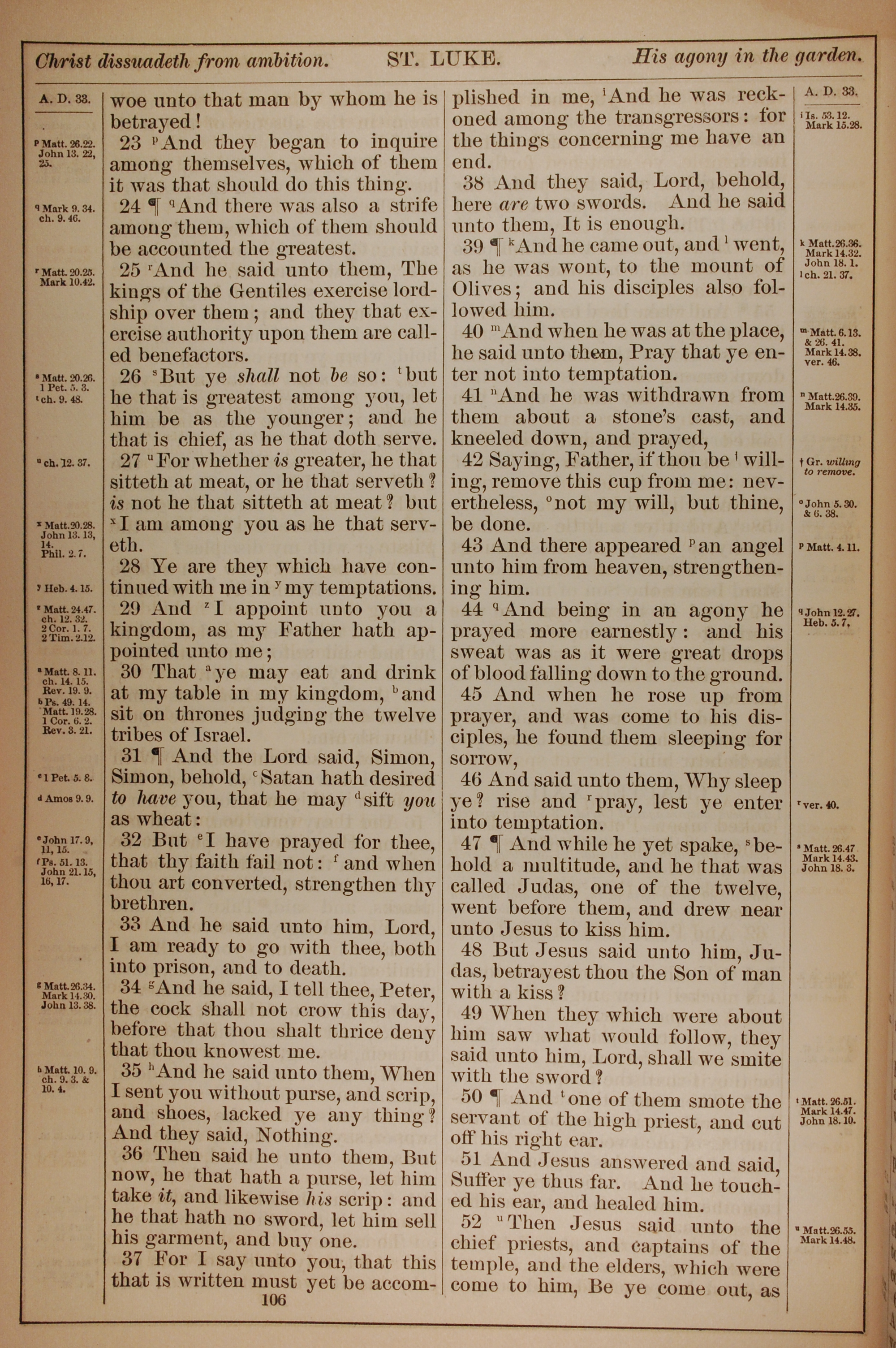 1882年Holy Bible 路加福音 22 章 23 節到 22 章 52 節