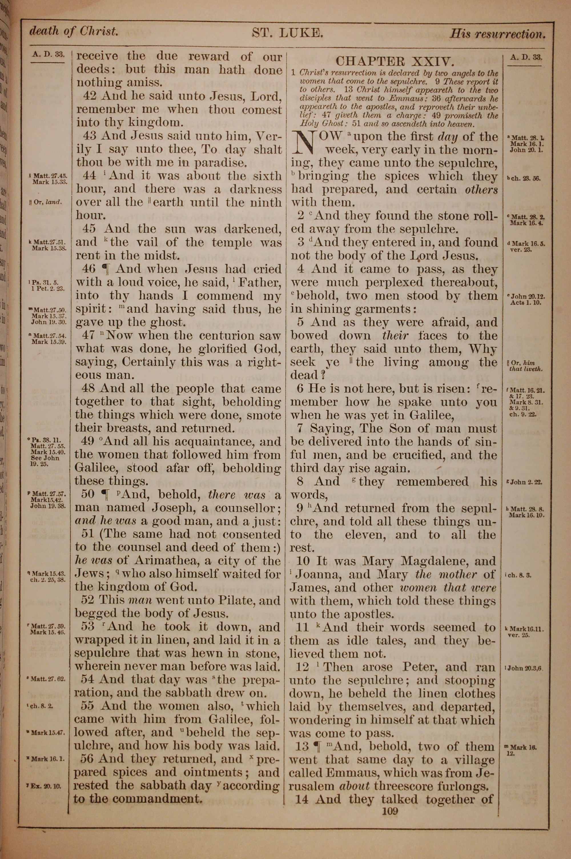 1882年Holy Bible 路加福音 23 章 42 節到 24 章 14 節
