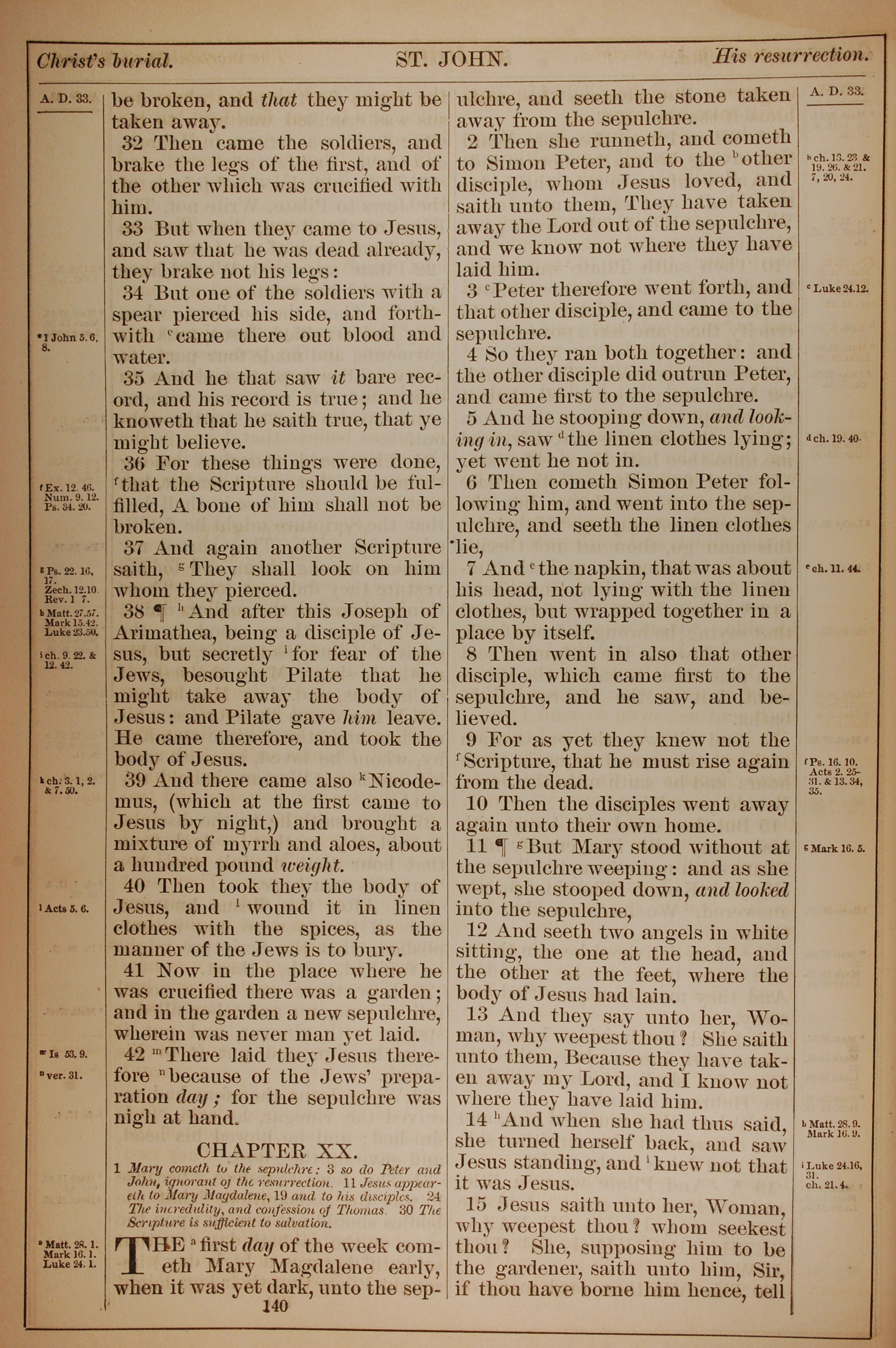 1882年Holy Bible 約翰福音 19 章 32 節到 20 章 15 節
