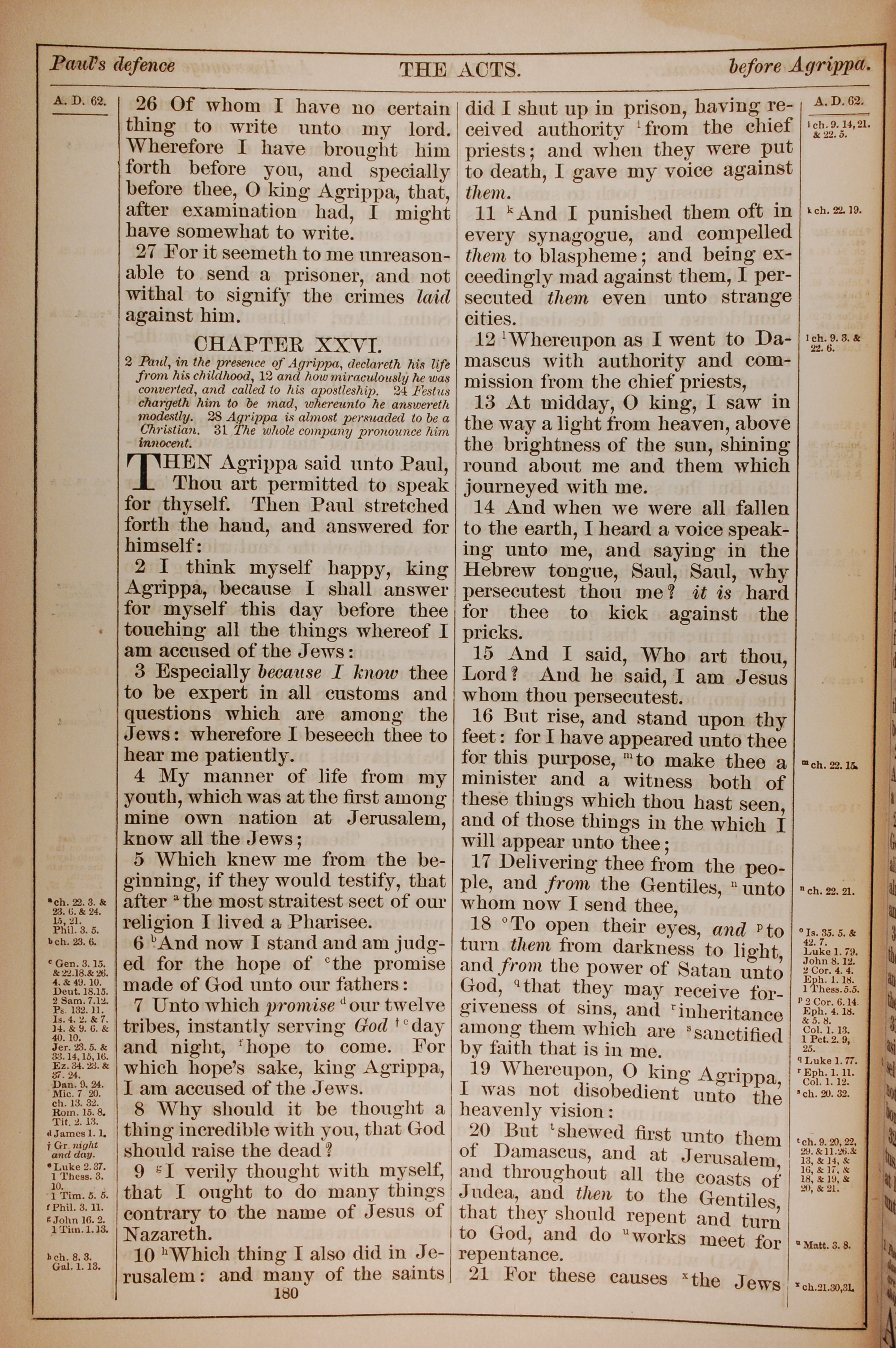 1882年Holy Bible 使徒行傳 25 章 26 節到 26 章 21 節