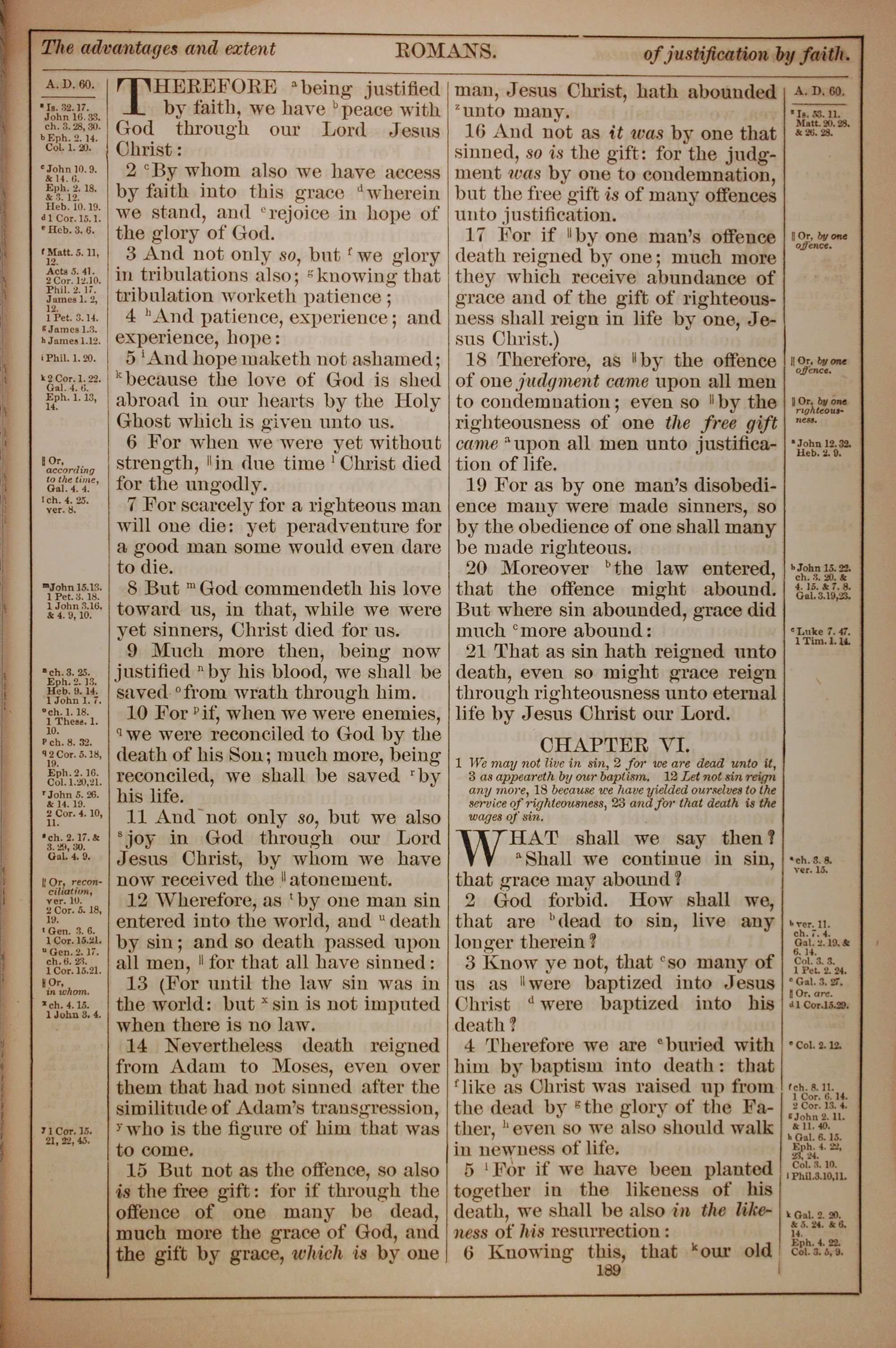 1882年Holy Bible 羅馬書 5 章 1 節到 6 章 6 節