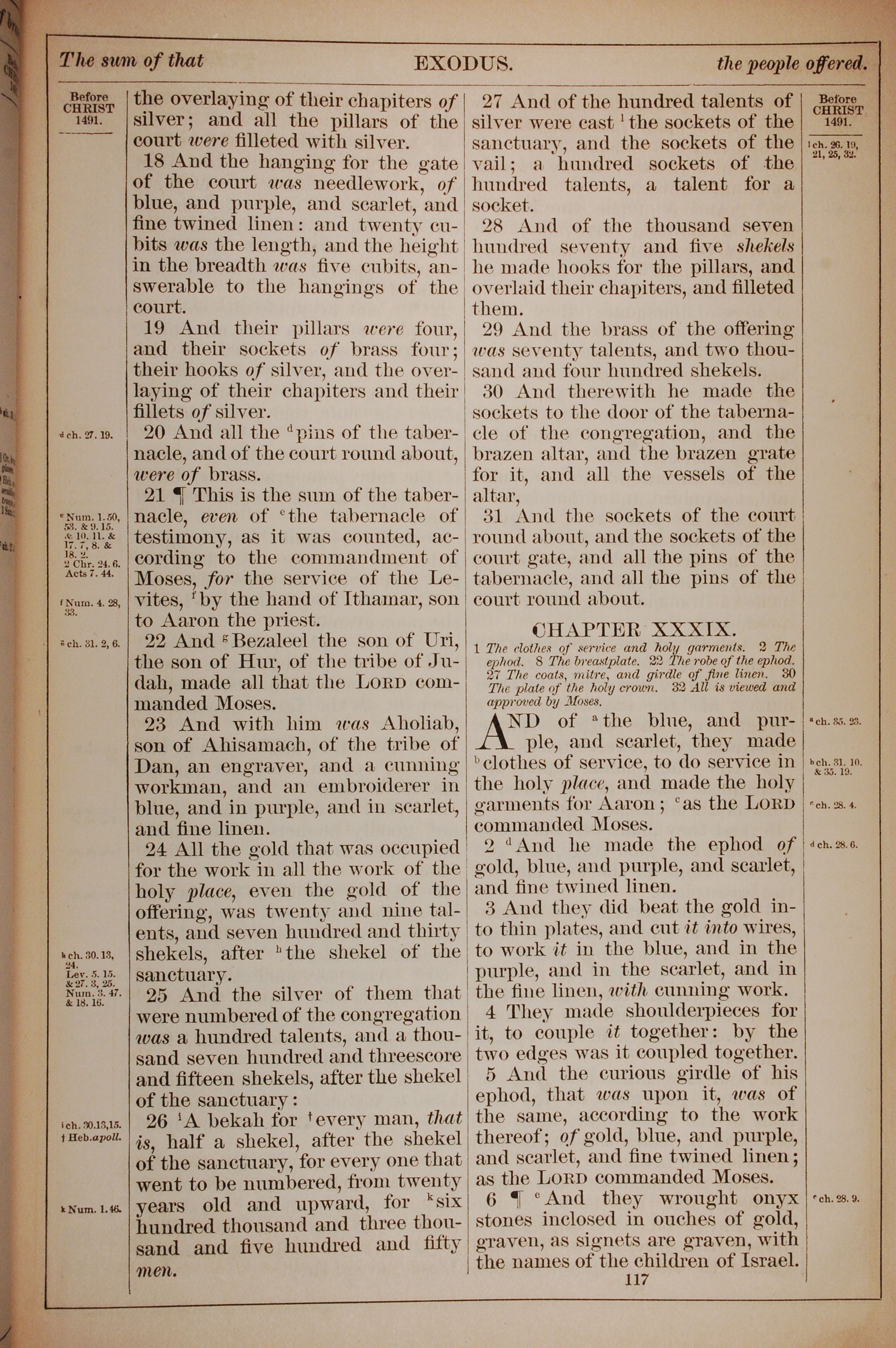 1882年Holy Bible 出埃及記 38 章 18 節到 39 章 6 節