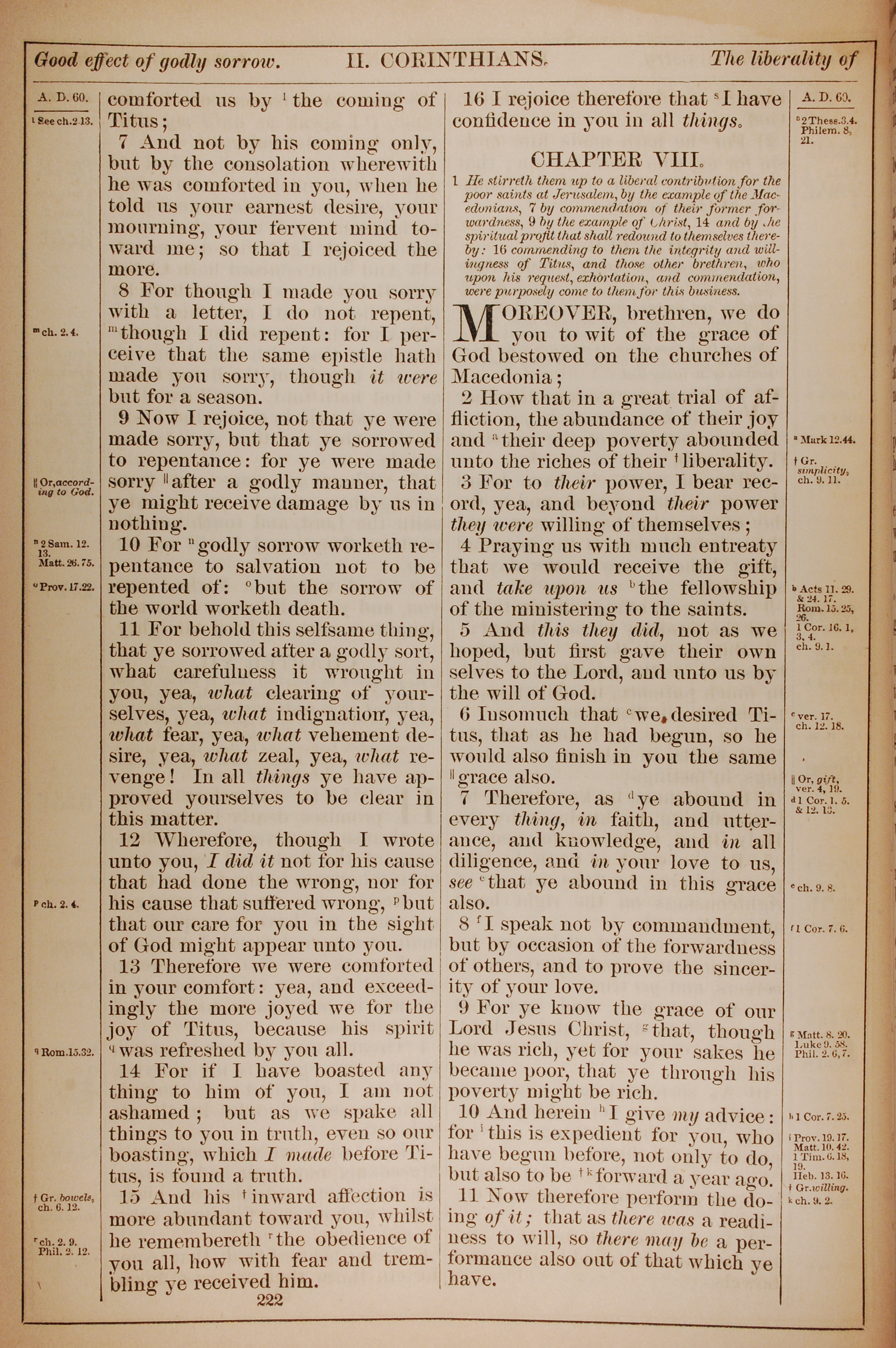 1882年Holy Bible 哥林多後書 7 章 7 節到 8 章 11 節