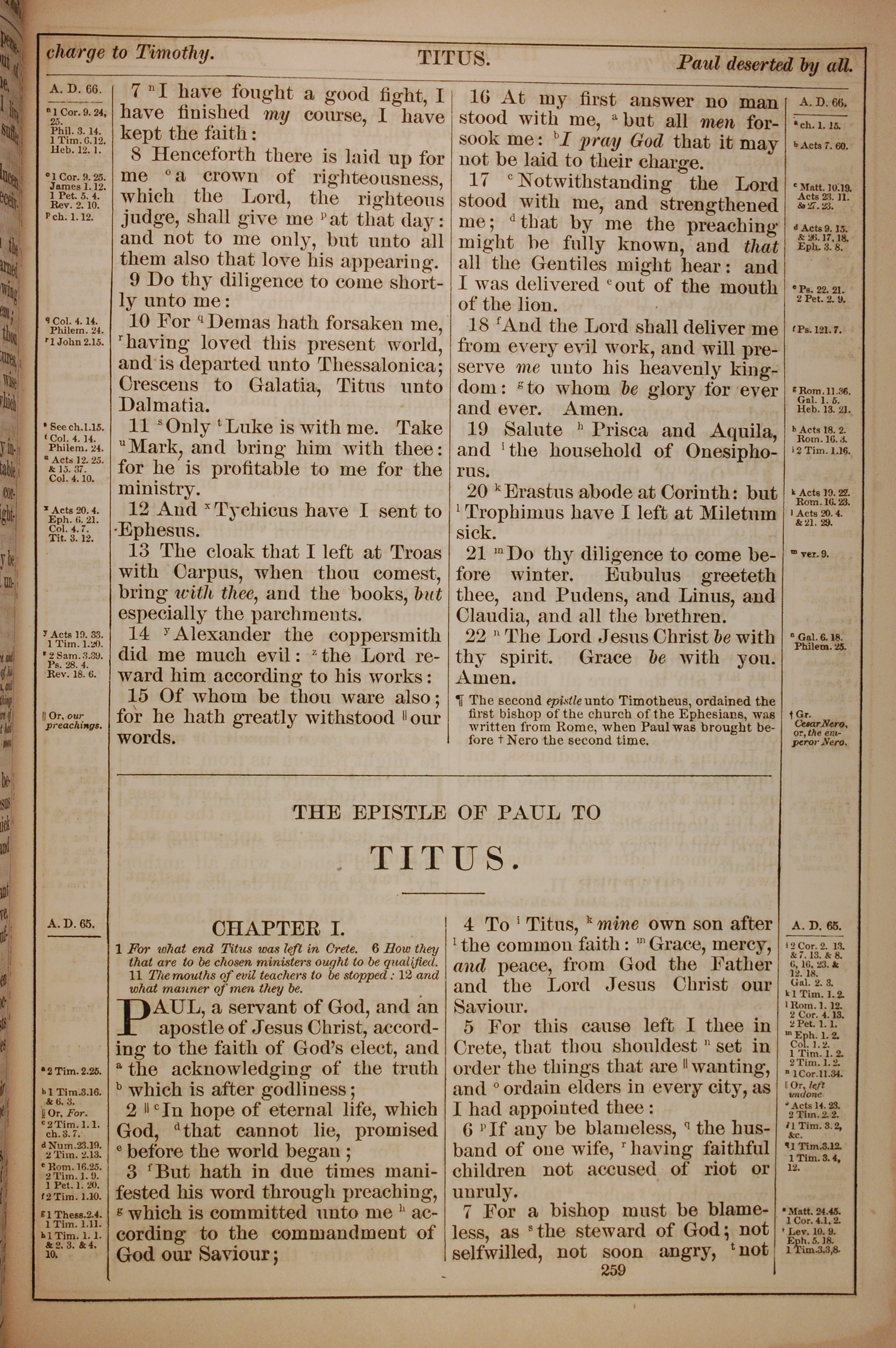 1882年Holy Bible 提多書 1 章 1 節到 1 章 7 節