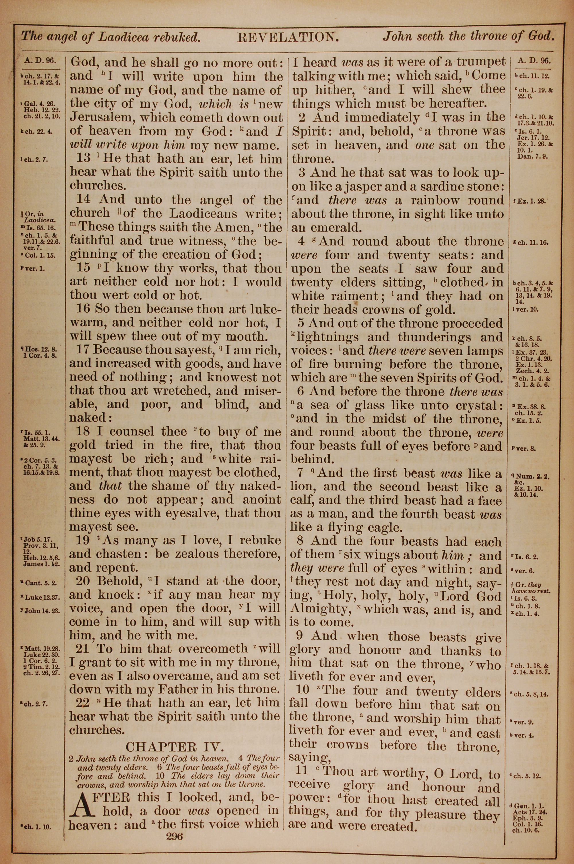1882年Holy Bible 啟示錄 3 章 13 節到 4 章 11 節