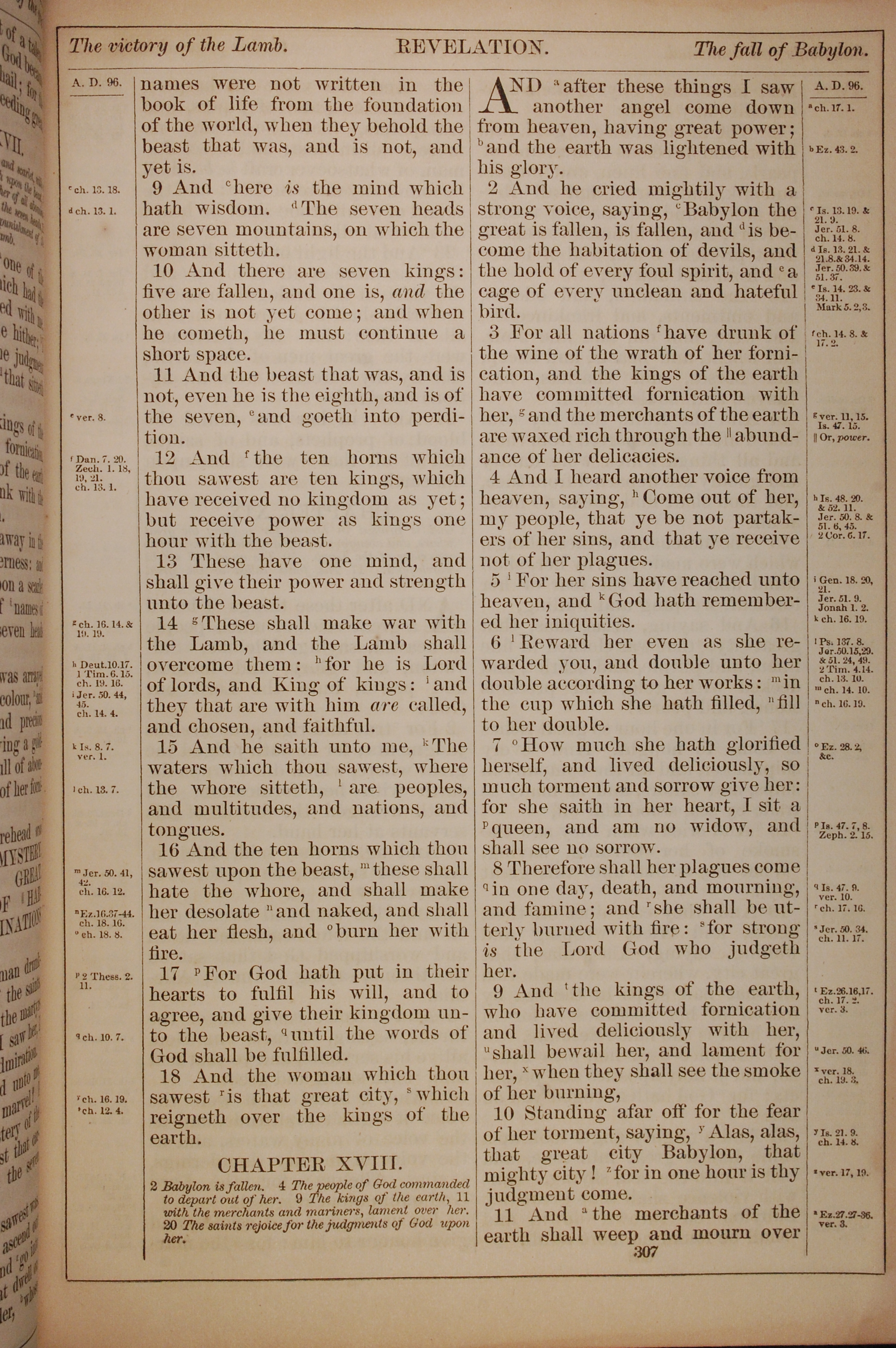1882年Holy Bible 啟示錄 17 章 9 節到 18 章 11 節