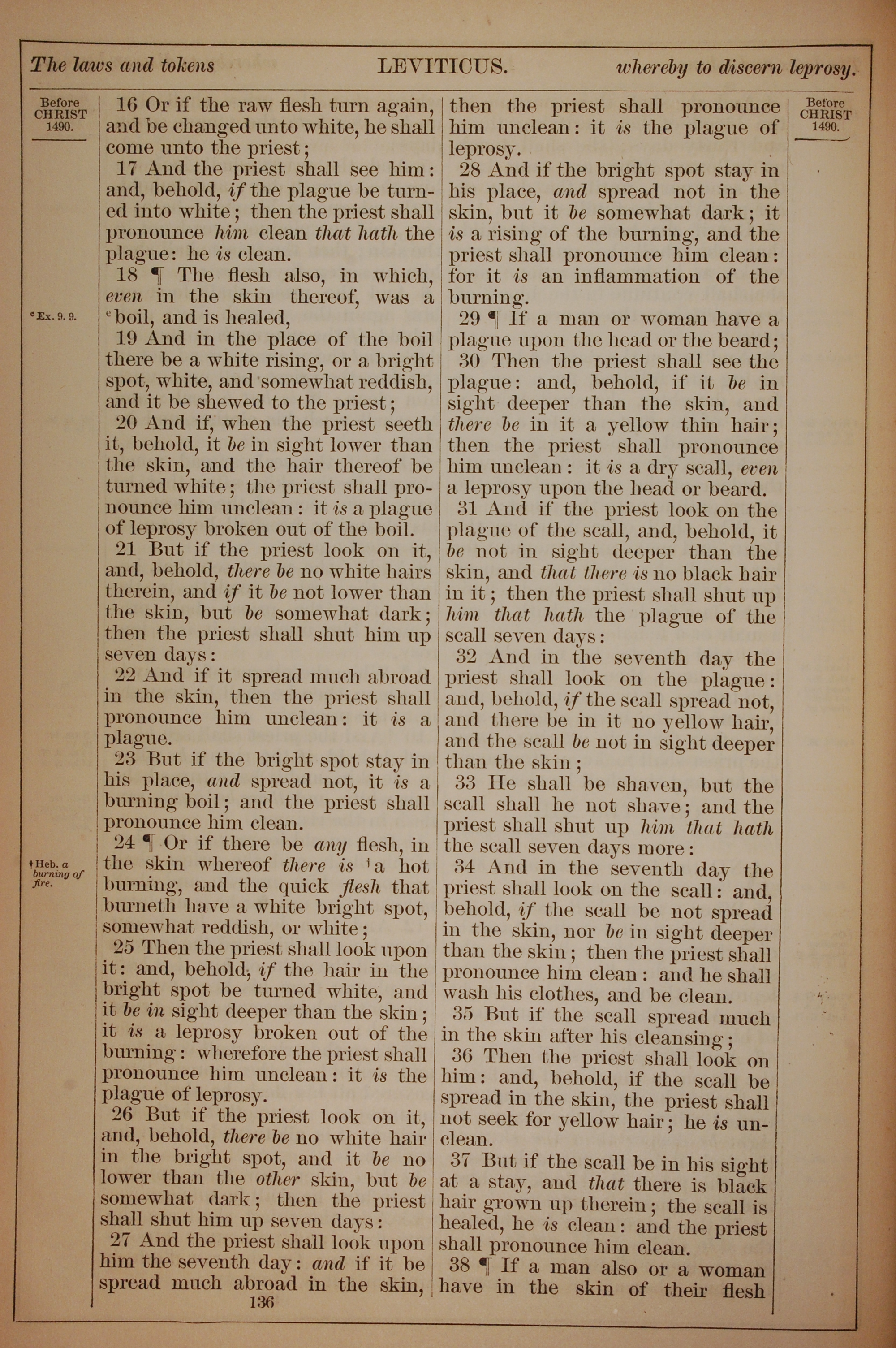 1882年Holy Bible 利未記 13 章 16 節到 13 章 38 節