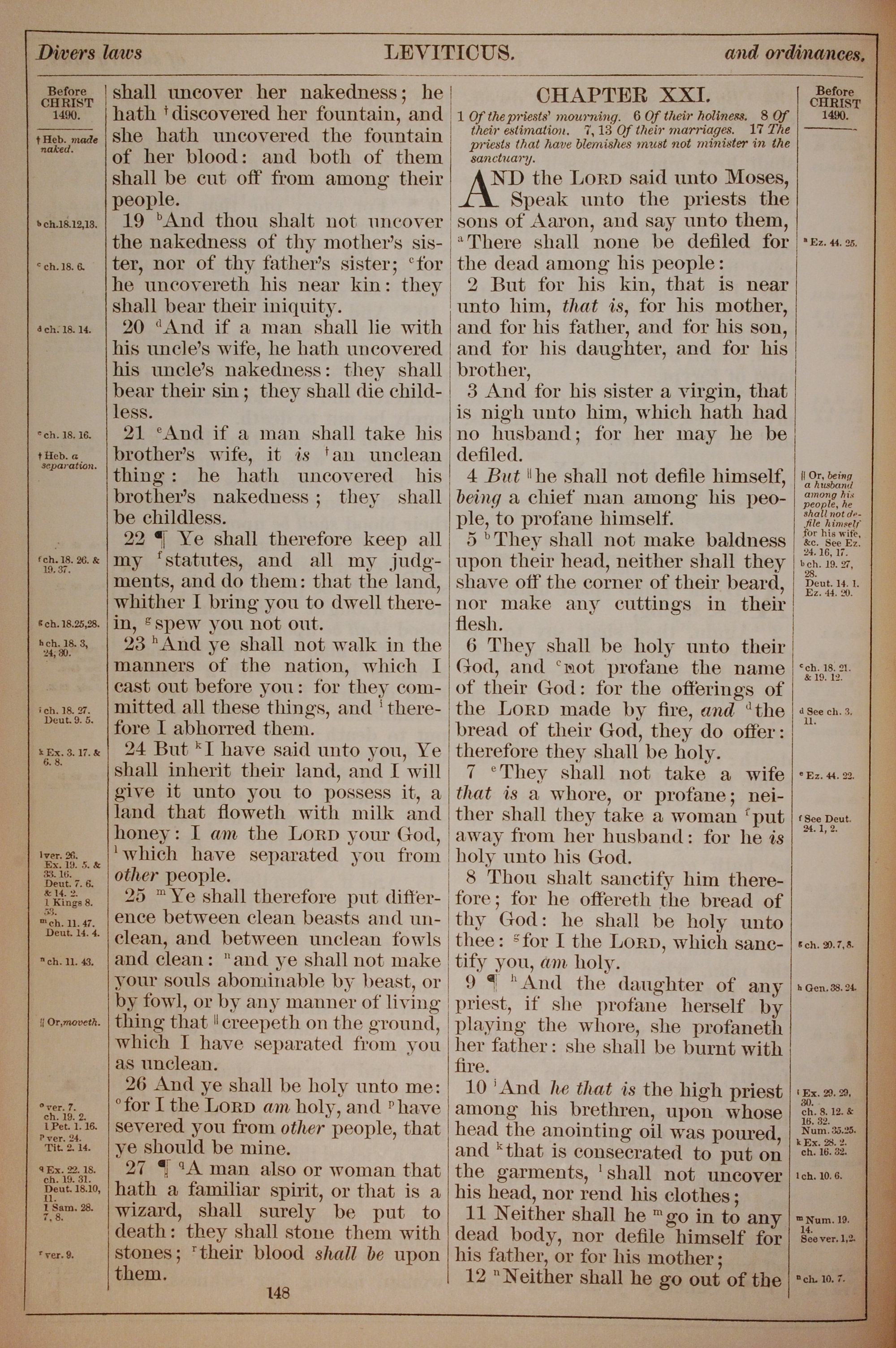 1882年Holy Bible 利未記 20 章 19 節到 21 章 12 節