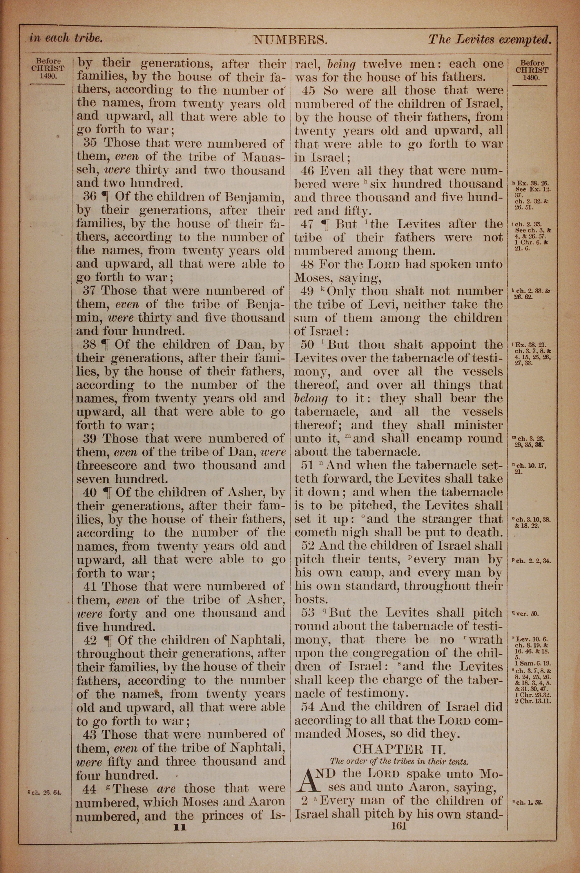 1882年Holy Bible 民數記 1 章 35 節到 2 章 2 節