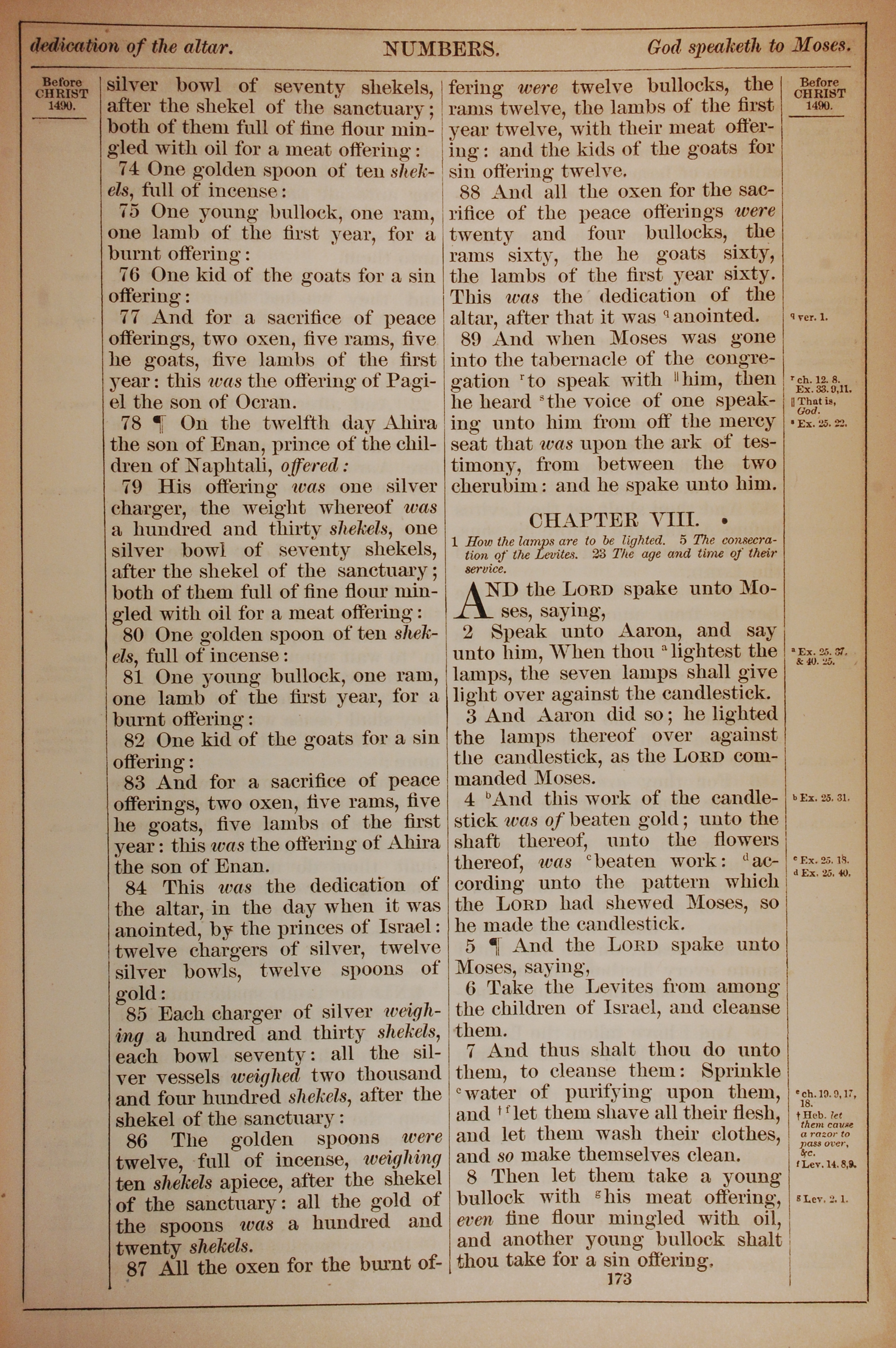 1882年Holy Bible 民數記 7 章 74 節到 8 章 8 節