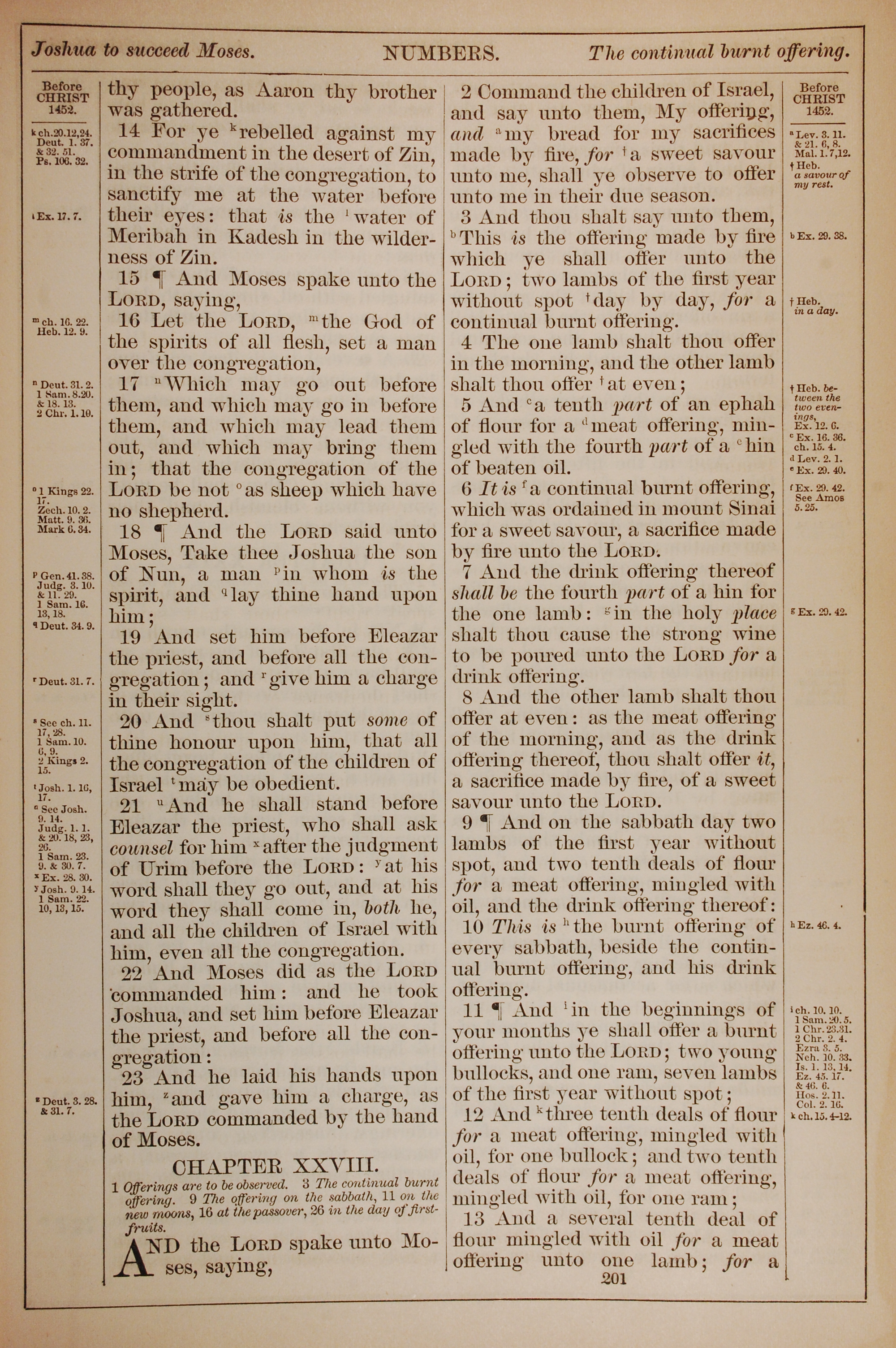 1882年Holy Bible 民數記 27 章 14 節到 28 章 13 節