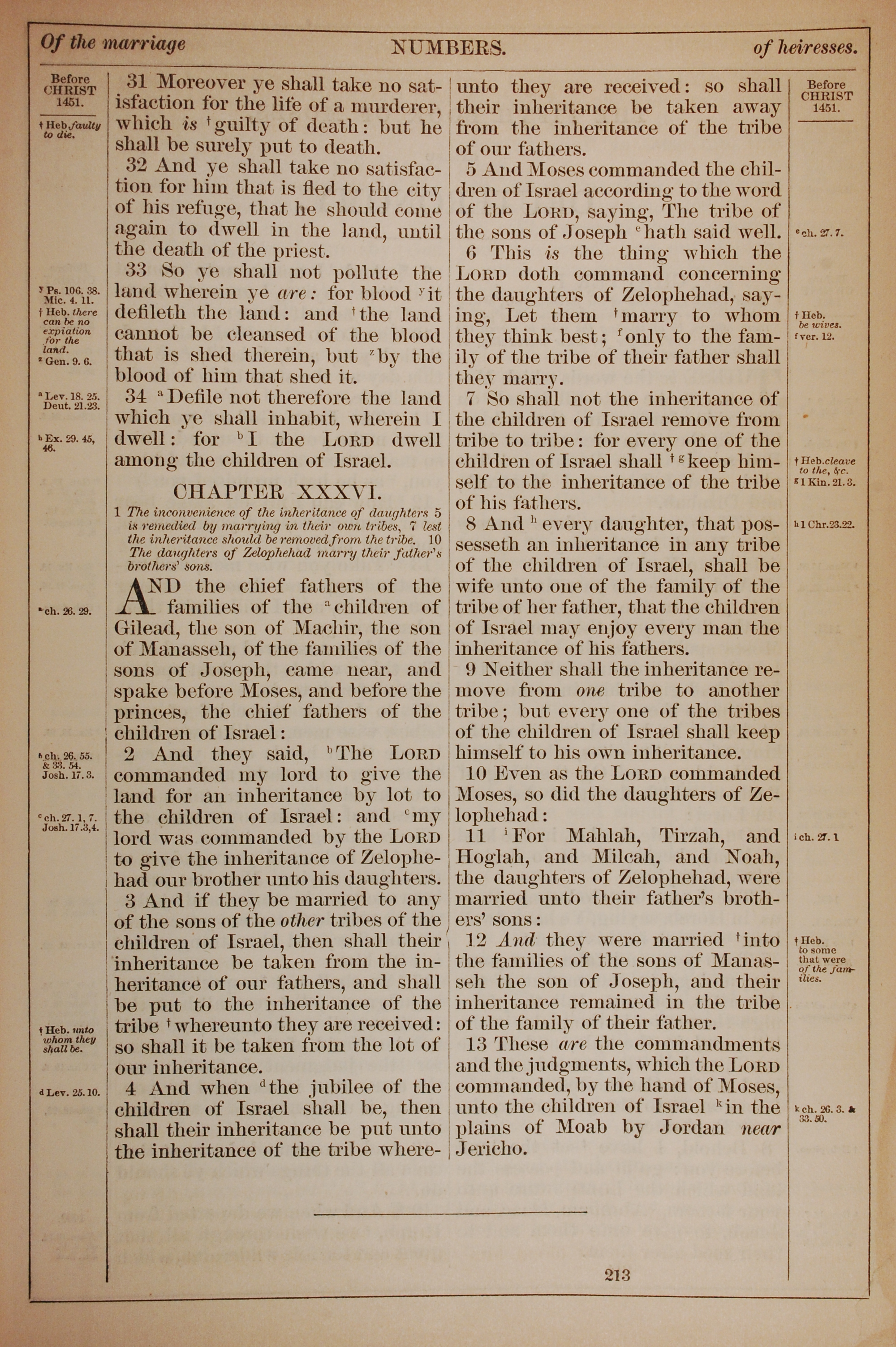 1882年Holy Bible 民數記 35 章 31 節到 36 章 13 節