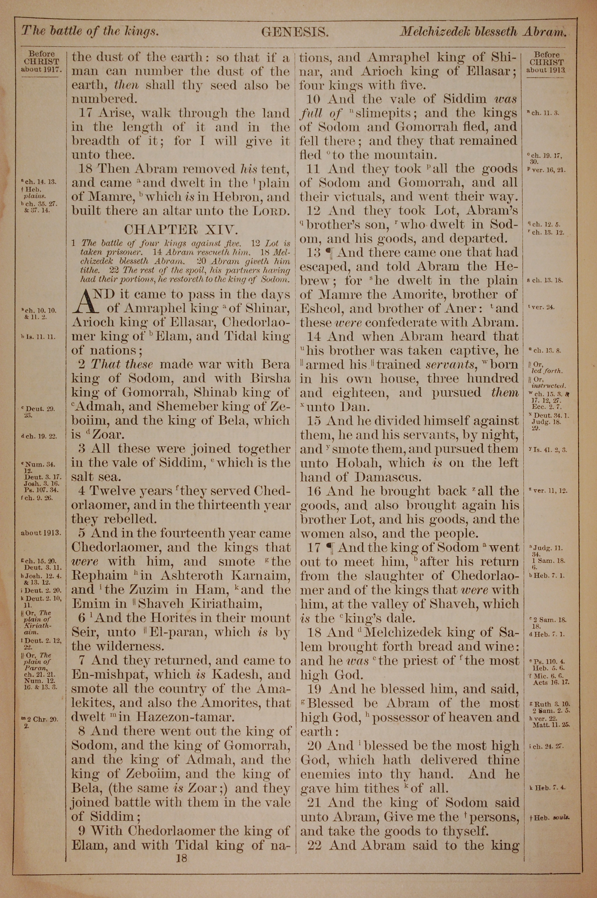 1882年Holy Bible 創世記 13 章 17 節到 14 章 22 節
