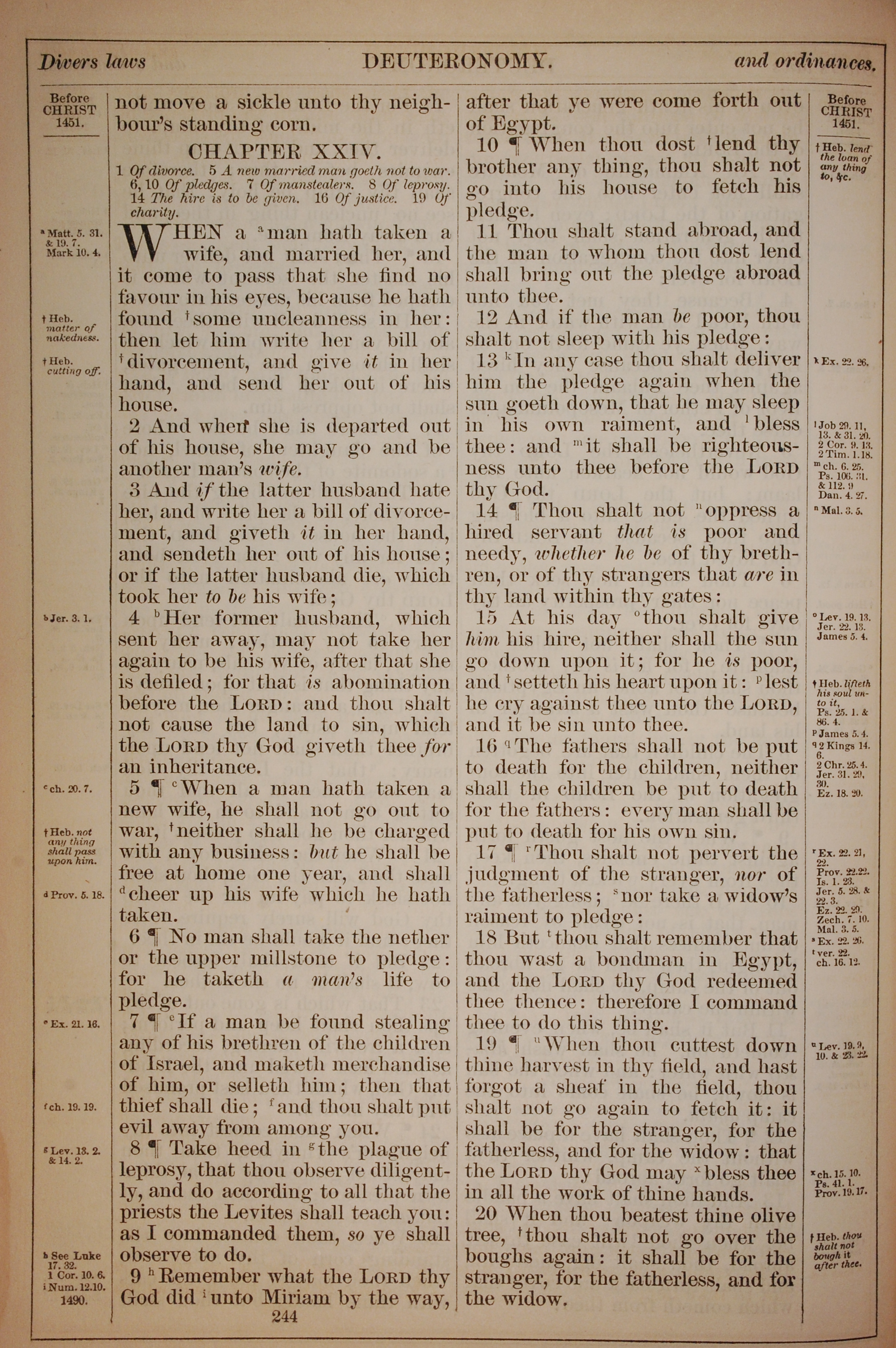 1882年Holy Bible 申命記 24 章 1 節到 24 章 20 節