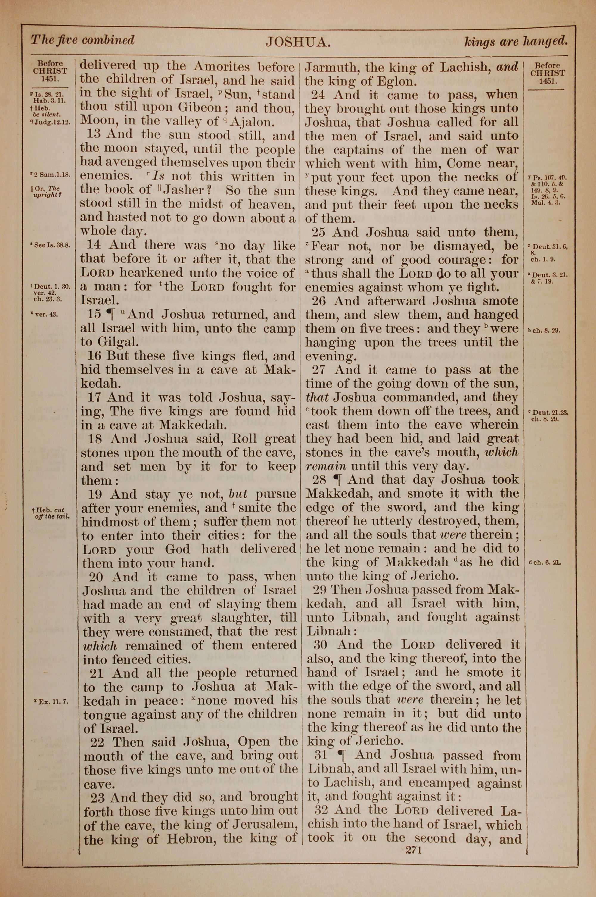 1882年Holy Bible 約書亞記 10 章 13 節到 10 章 32 節