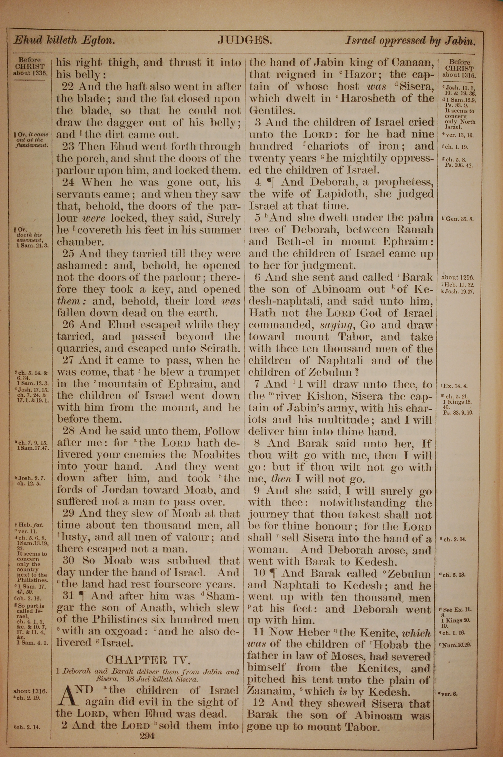 1882年Holy Bible 士師記 3 章 22 節到 4 章 12 節