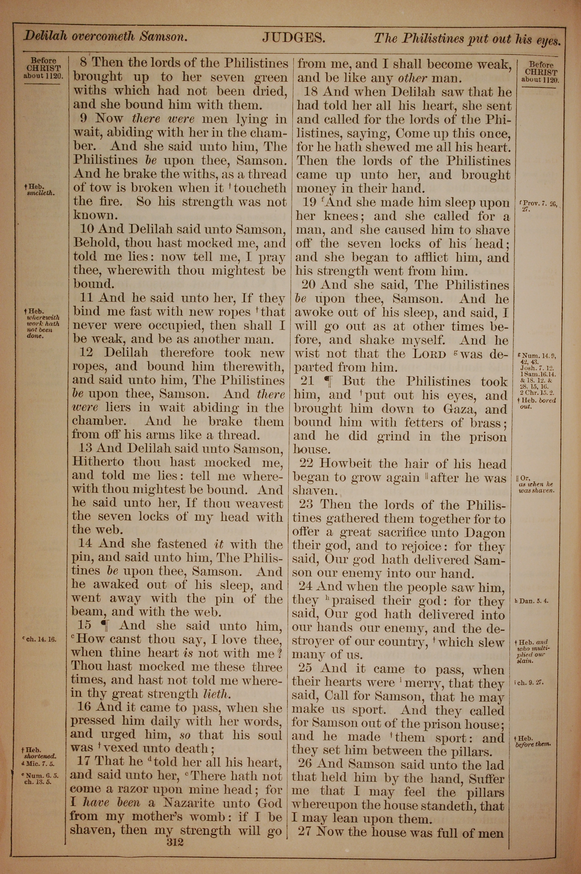 1882年Holy Bible 士師記 16 章 8 節到 16 章 27 節