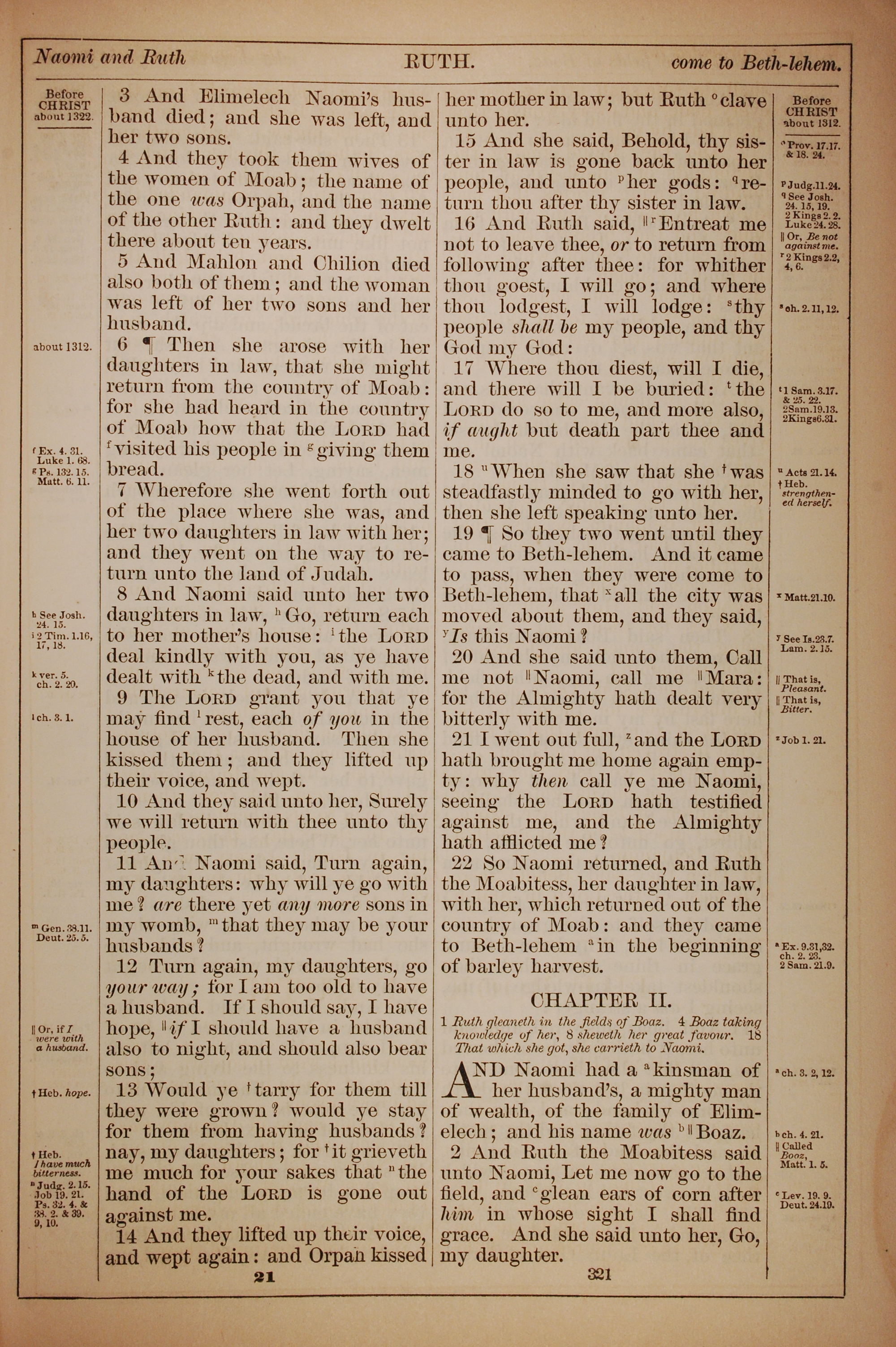 1882年Holy Bible 路得記 1 章 3 節到 2 章 2 節