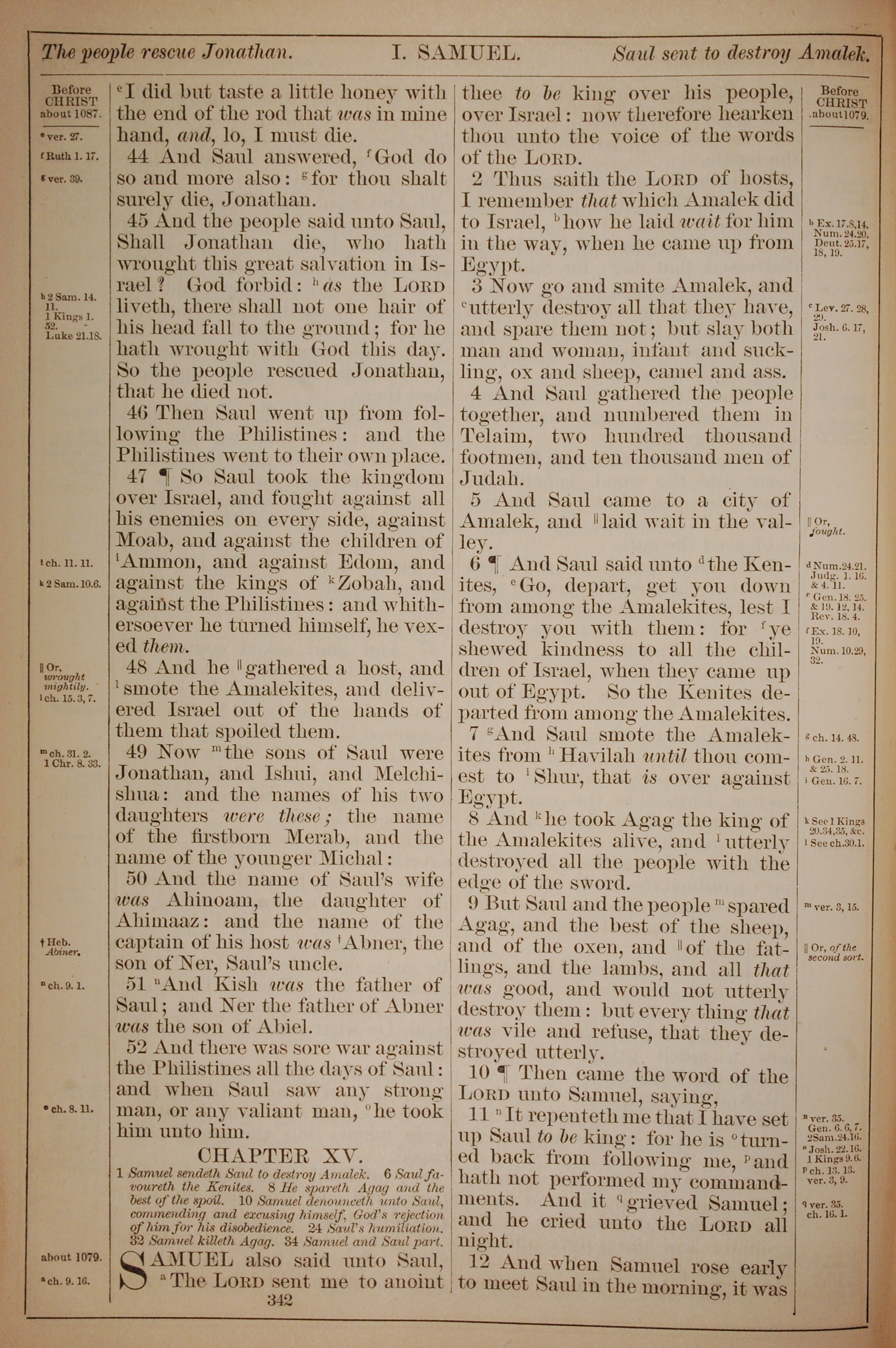 1882年Holy Bible 撒母耳記上 14 章 44 節到 15 章 12 節