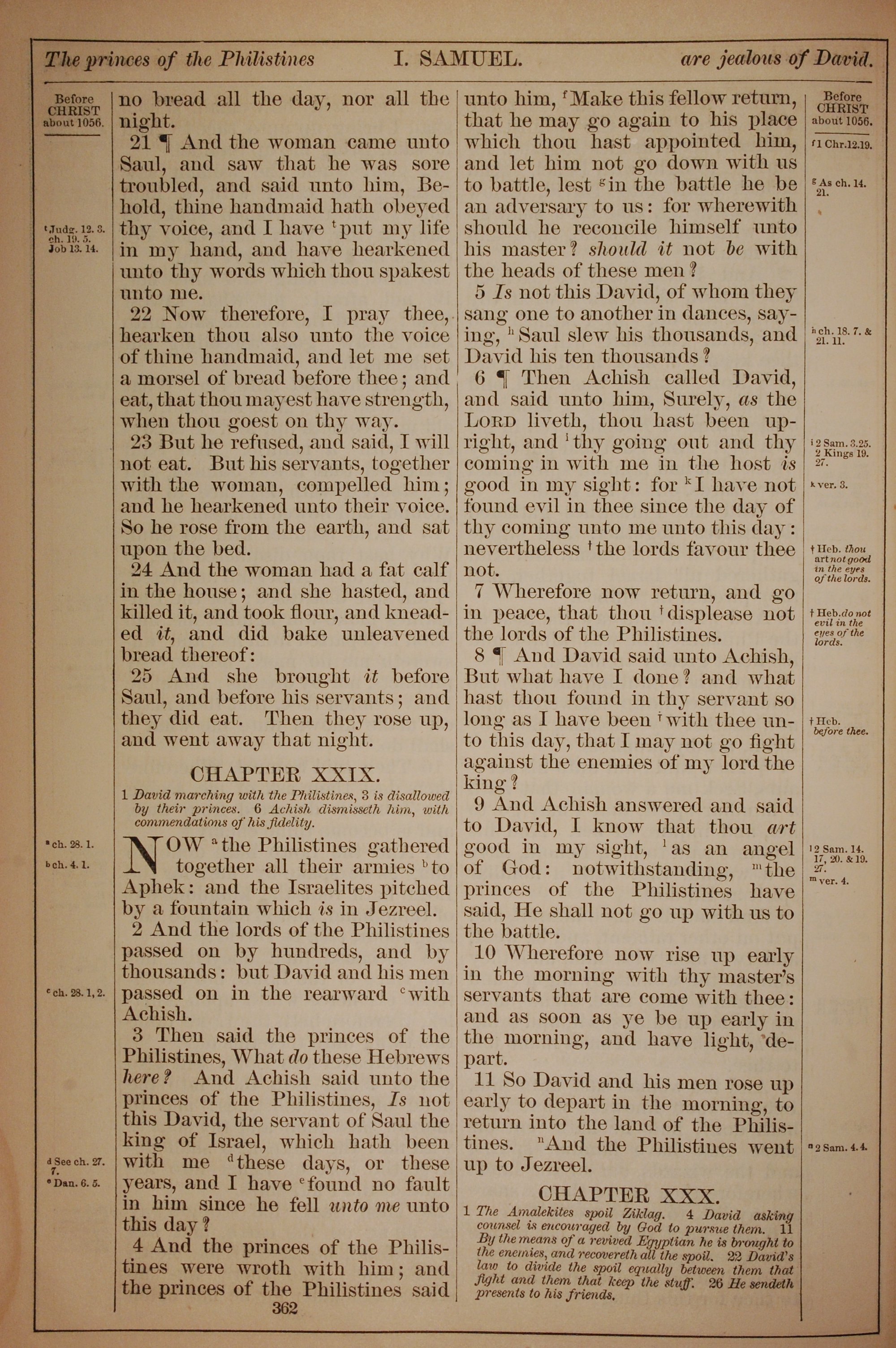 1882年Holy Bible 撒母耳記上 28 章 21 節到 29 章 11 節