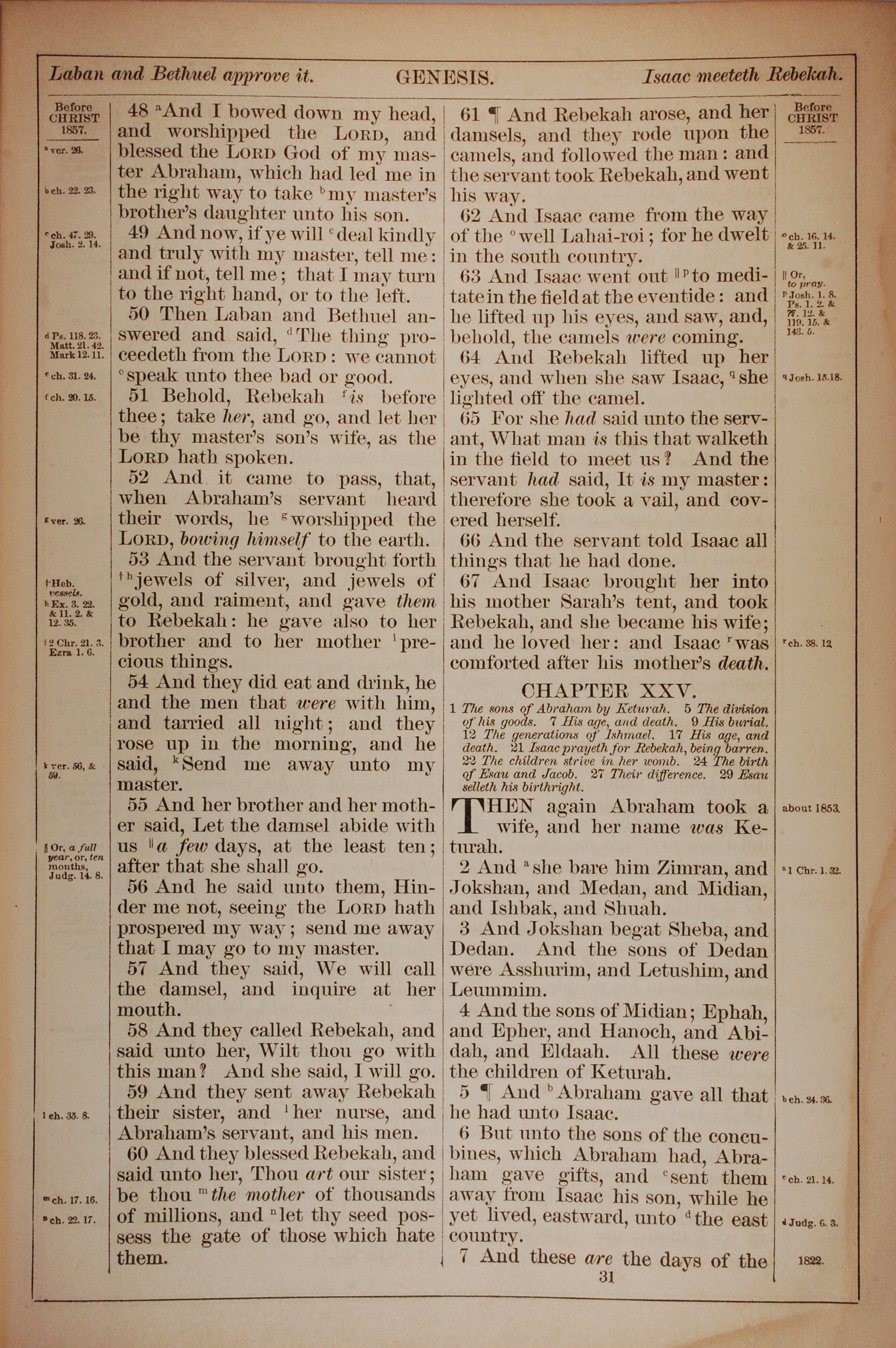 1882年Holy Bible 創世記 24 章 48 節到 25 章 7 節