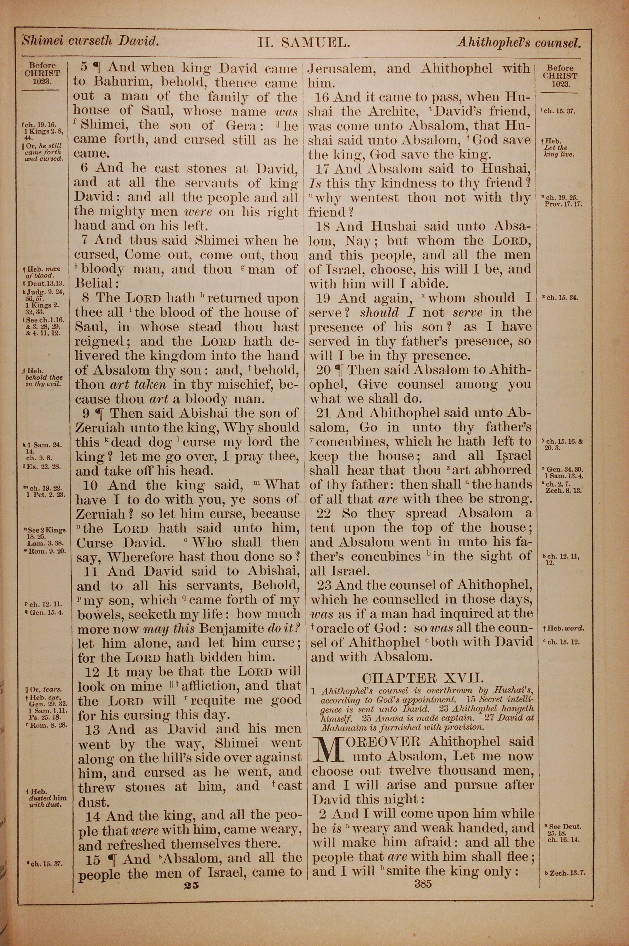 1882年Holy Bible 撒母耳記下 16 章 5 節到 17 章 2 節