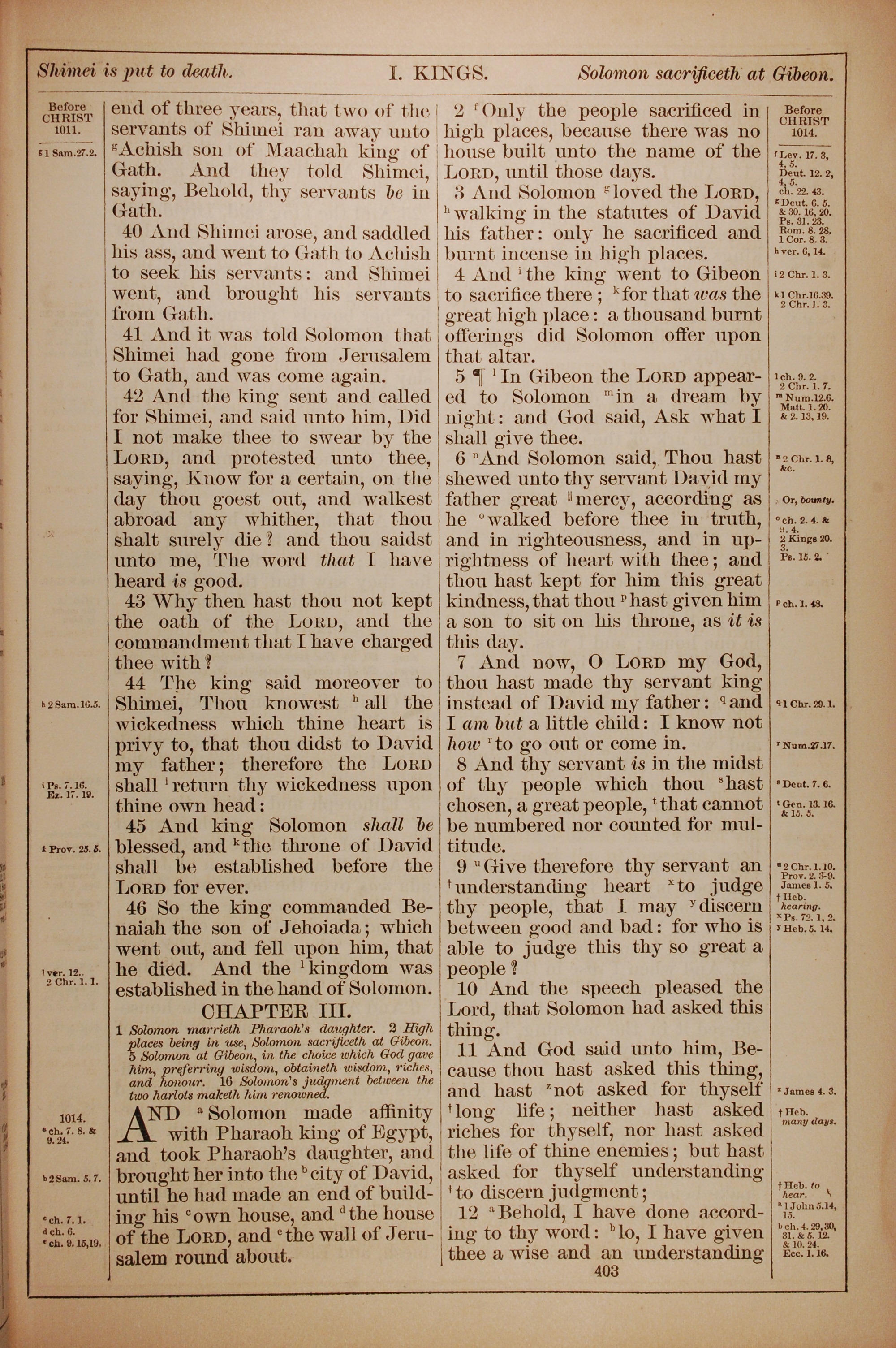 1882年Holy Bible 列王紀上 2 章 40 節到 3 章 12 節