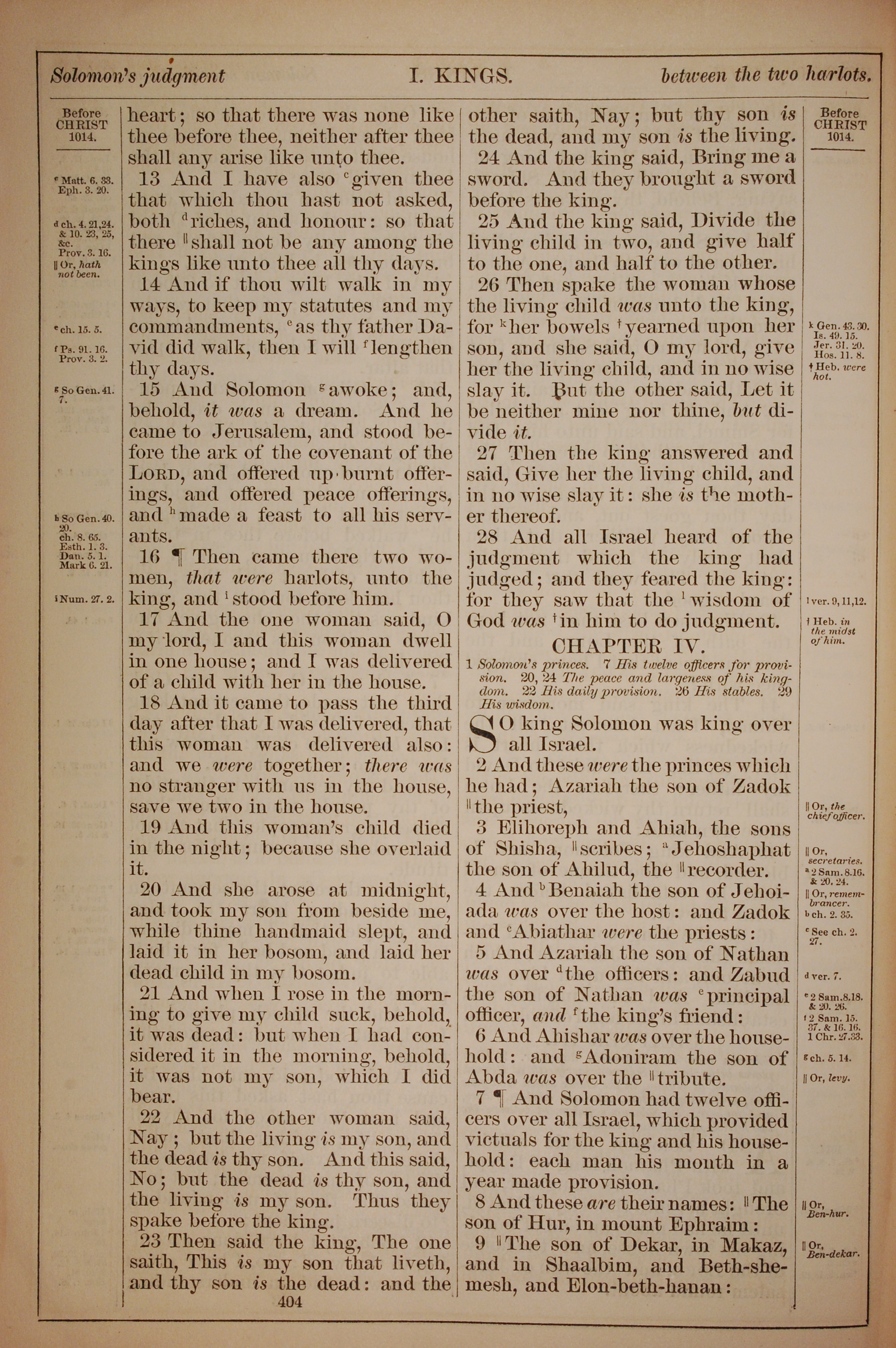 1882年Holy Bible 列王紀上 3 章 13 節到 4 章 9 節