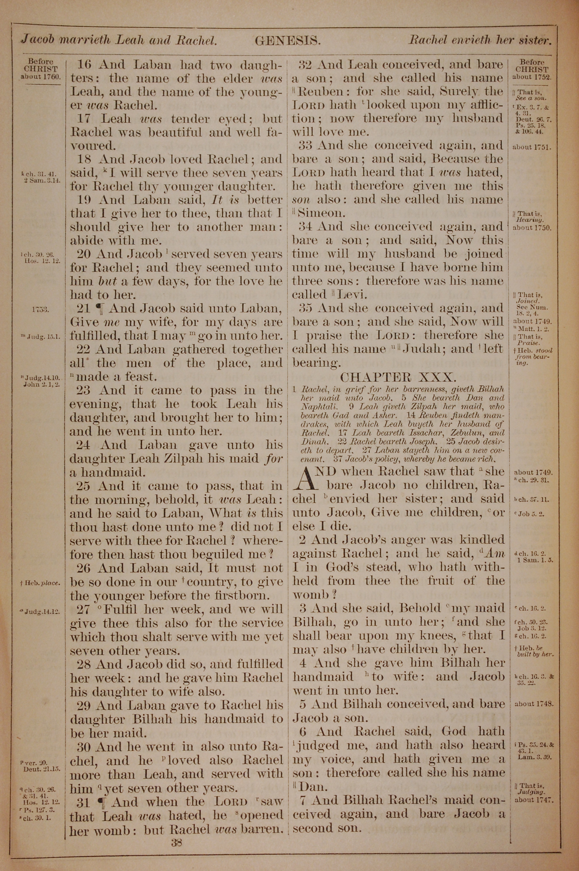 1882年Holy Bible 創世記 29 章 16 節到 30 章 7 節