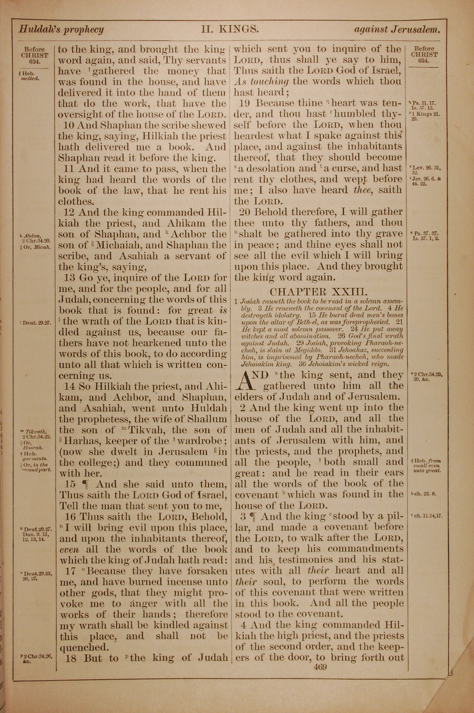 1882年Holy Bible 列王紀下 22 章 10 節到 23 章 4 節