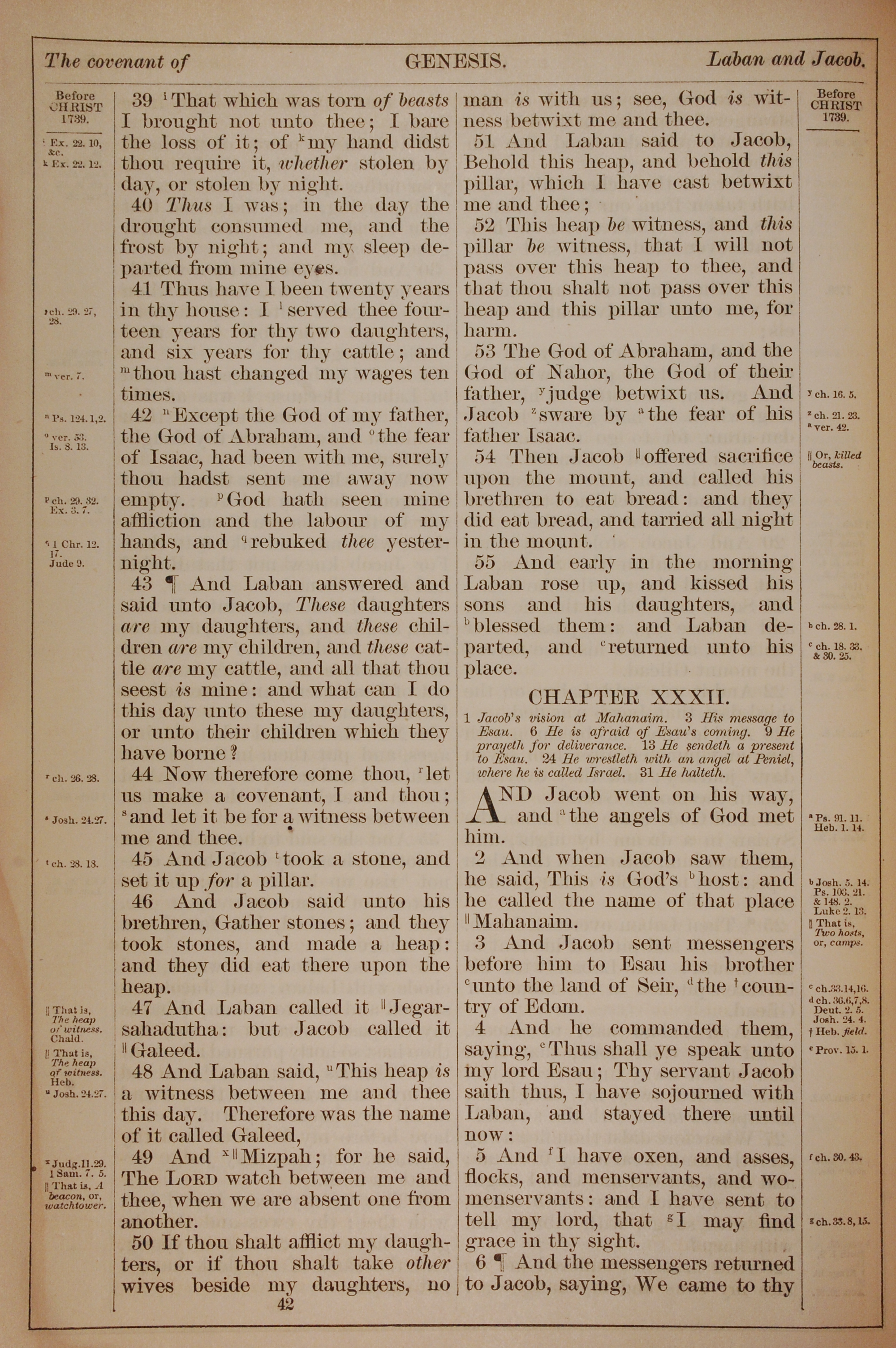 1882年Holy Bible 創世記 31 章 39 節到 32 章 6 節