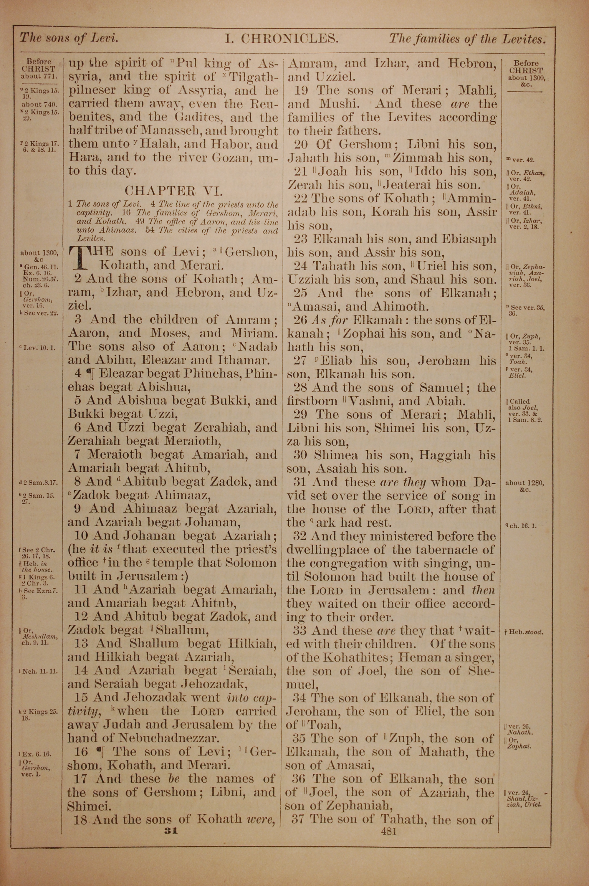 1882年Holy Bible 歷代志上 5 章 26 節到 6 章 37 節