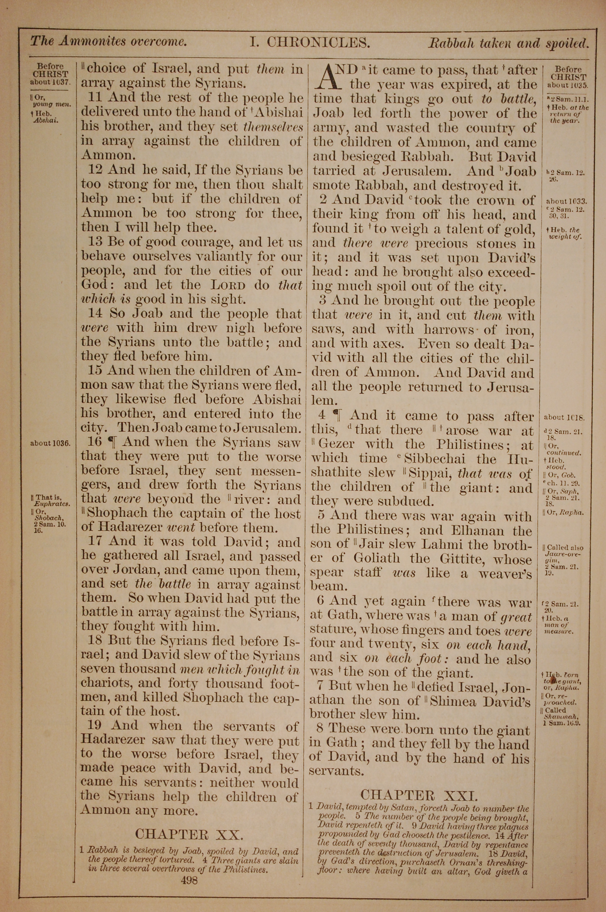 1882年Holy Bible 歷代志上 19 章 11 節到 20 章 8 節