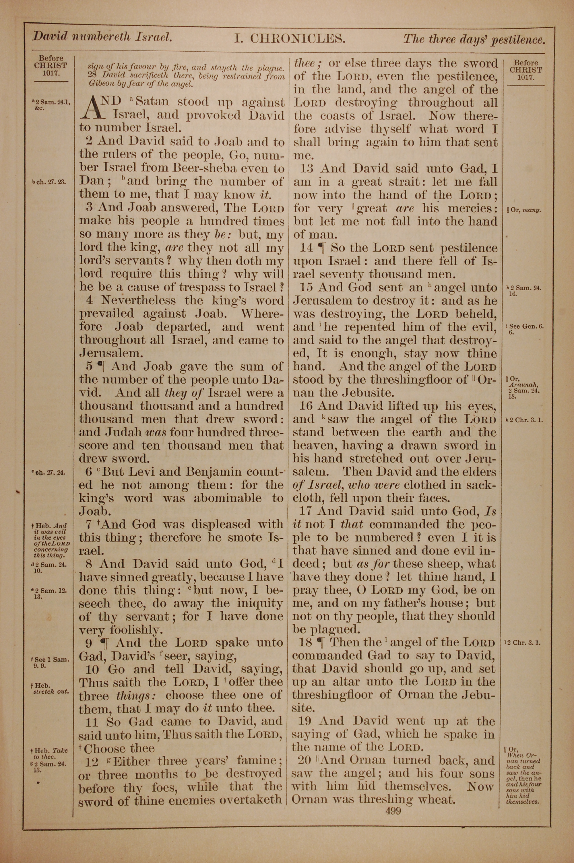 1882年Holy Bible 歷代志上 21 章 1 節到 21 章 20 節