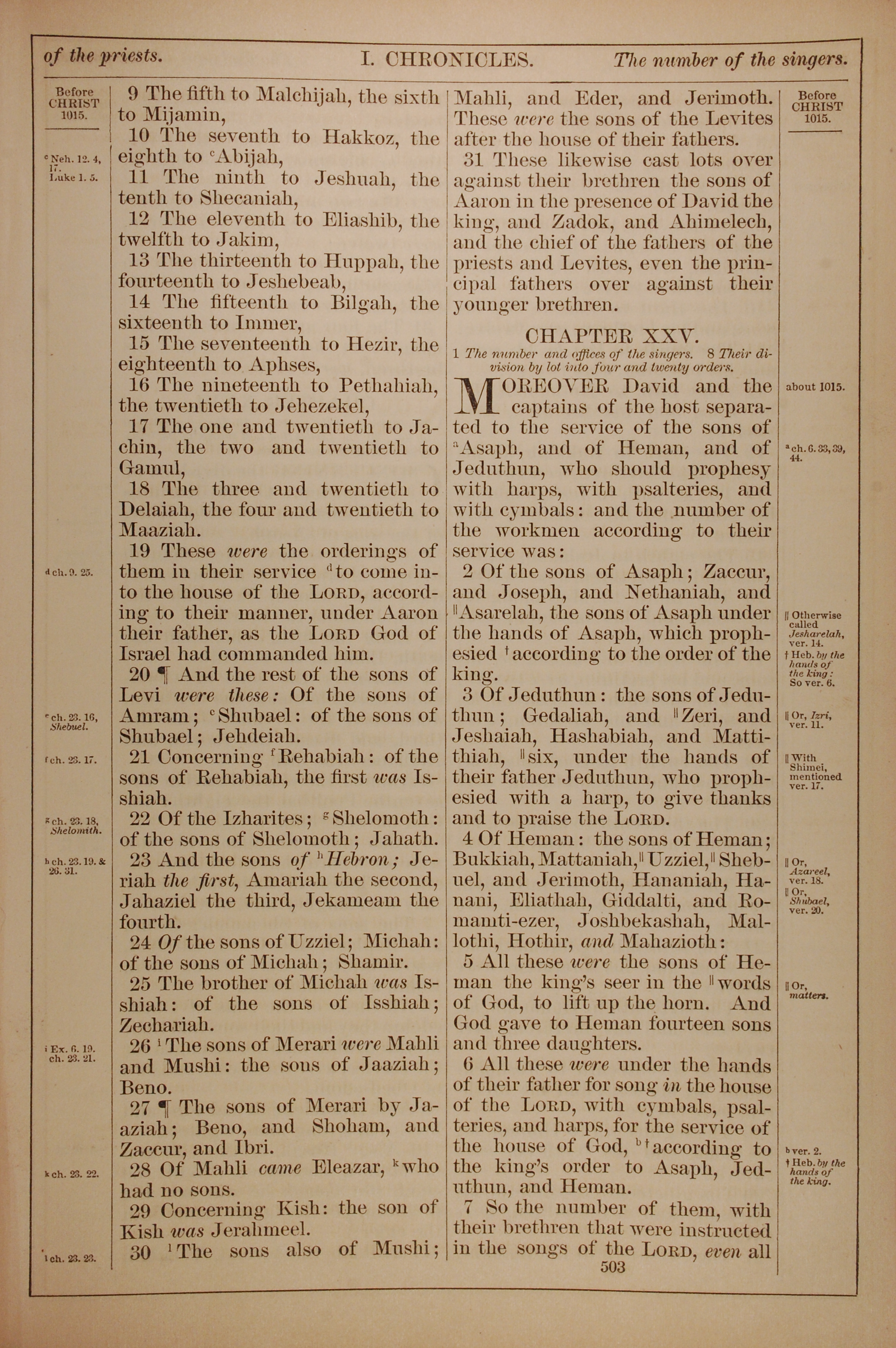 1882年Holy Bible 歷代志上 24 章 9 節到 25 章 7 節