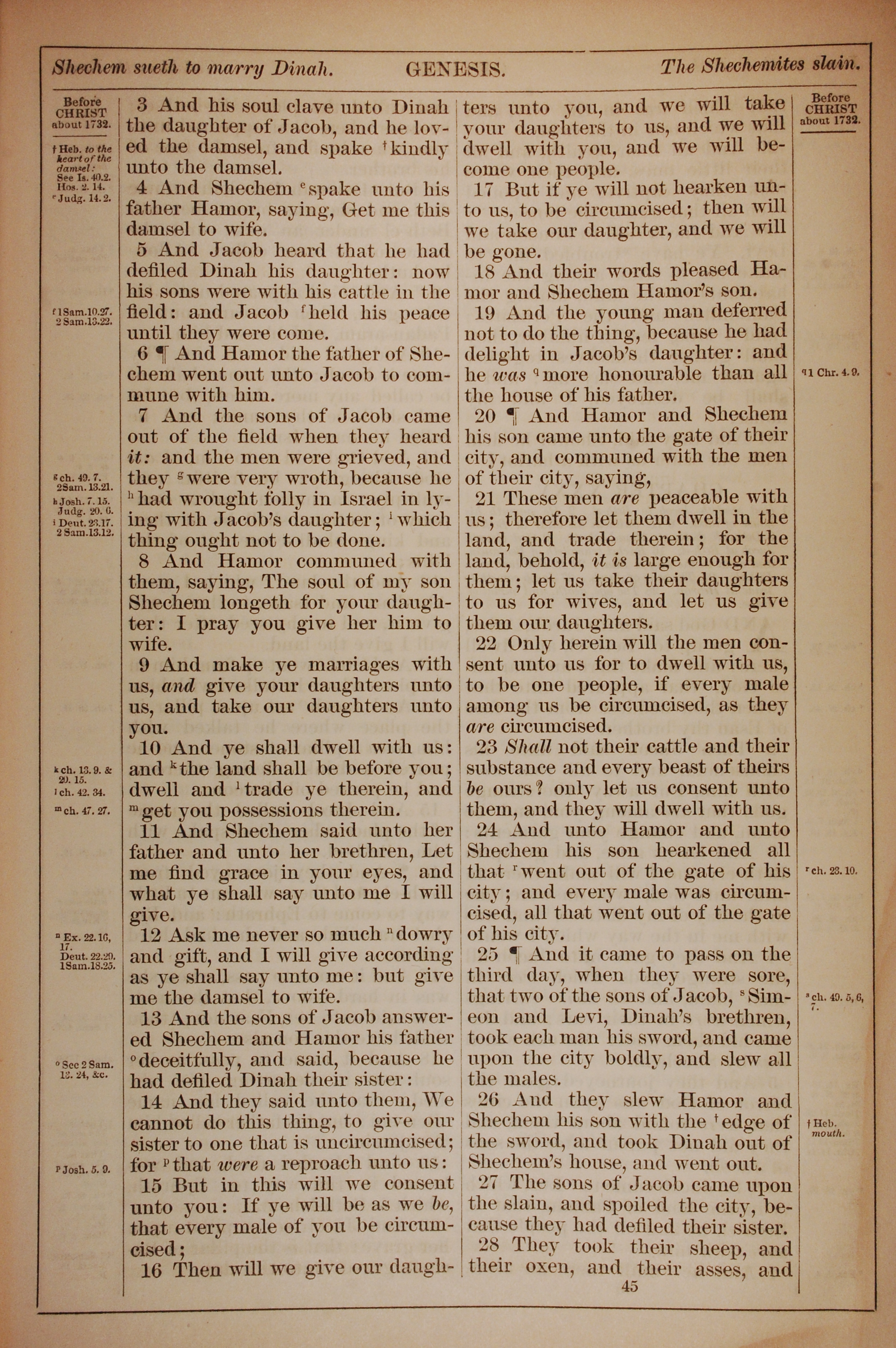 1882年Holy Bible 創世記 34 章 3 節到 34 章 28 節