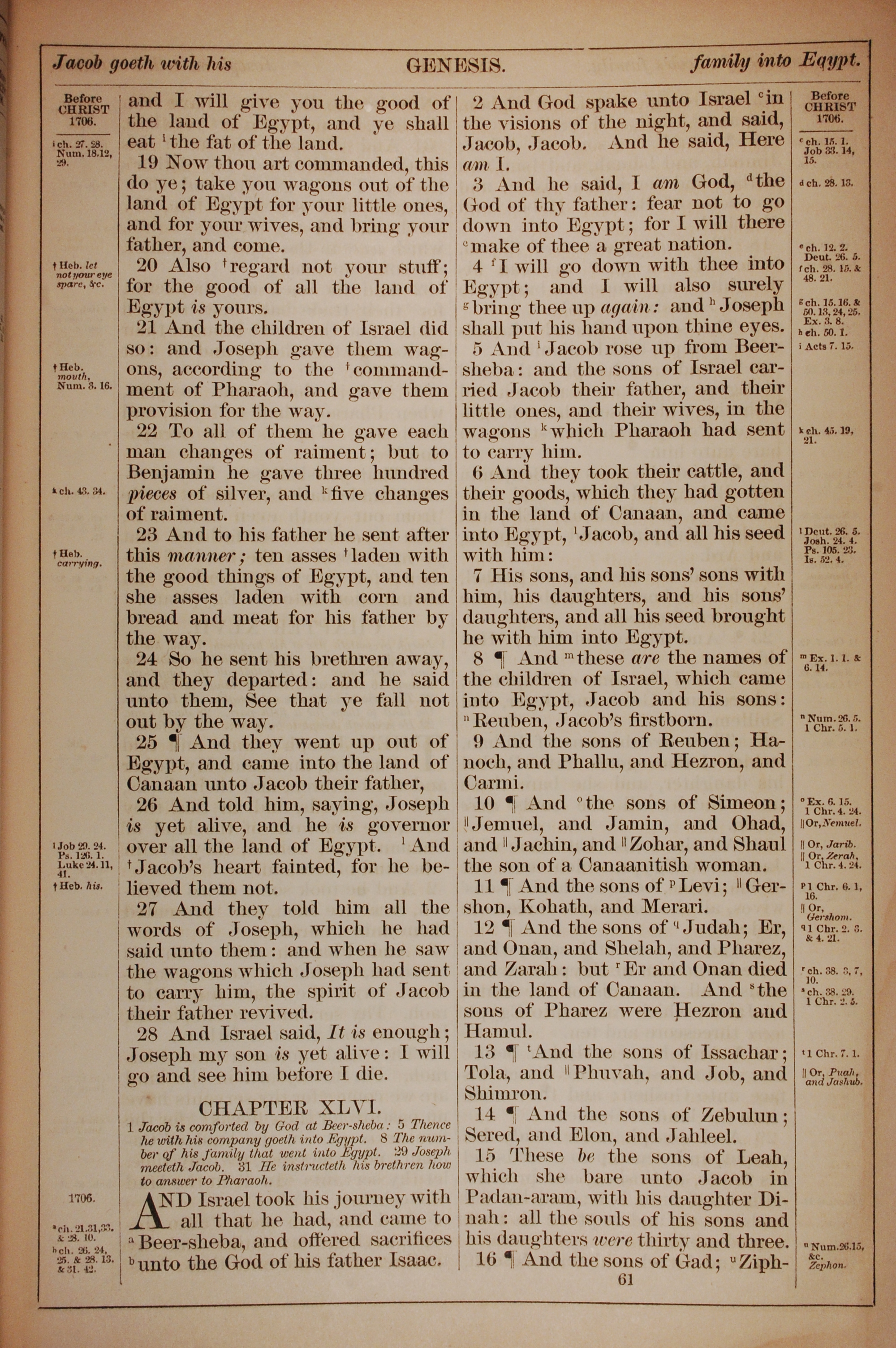 1882年Holy Bible 創世記 45 章 19 節到 46 章 16 節