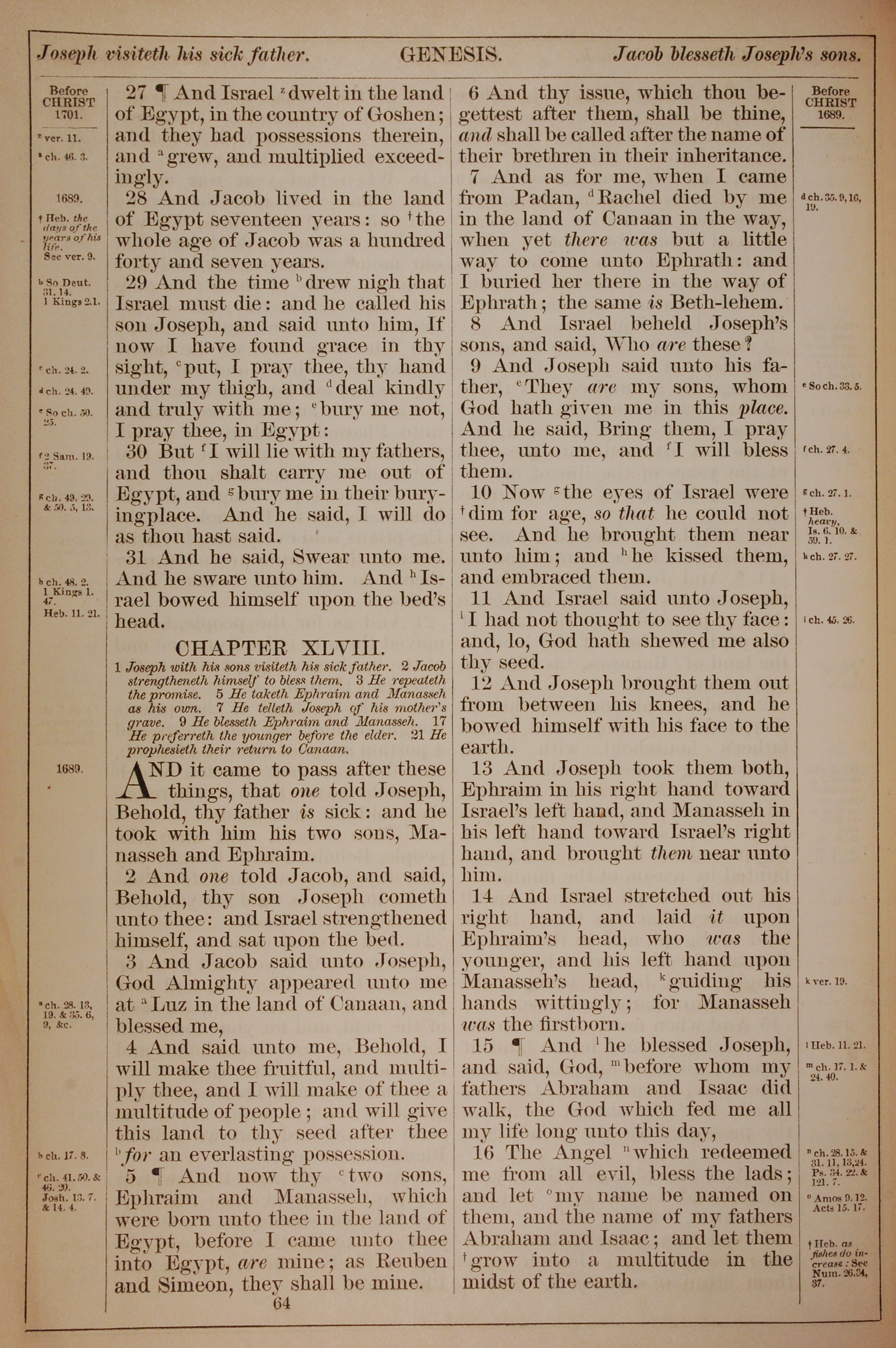 1882年Holy Bible 創世記 47 章 27 節到 48 章 16 節