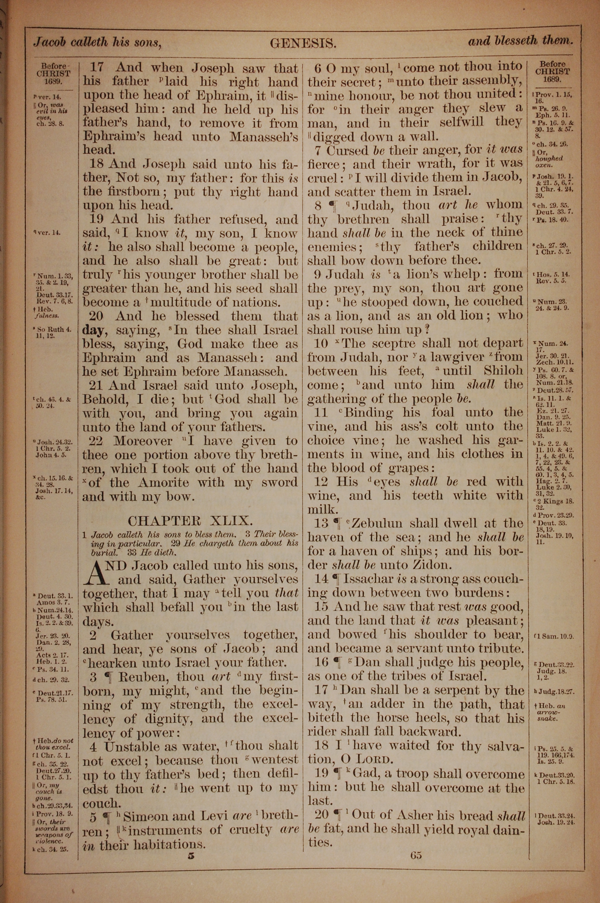 1882年Holy Bible 創世記 48 章 17 節到 49 章 20 節