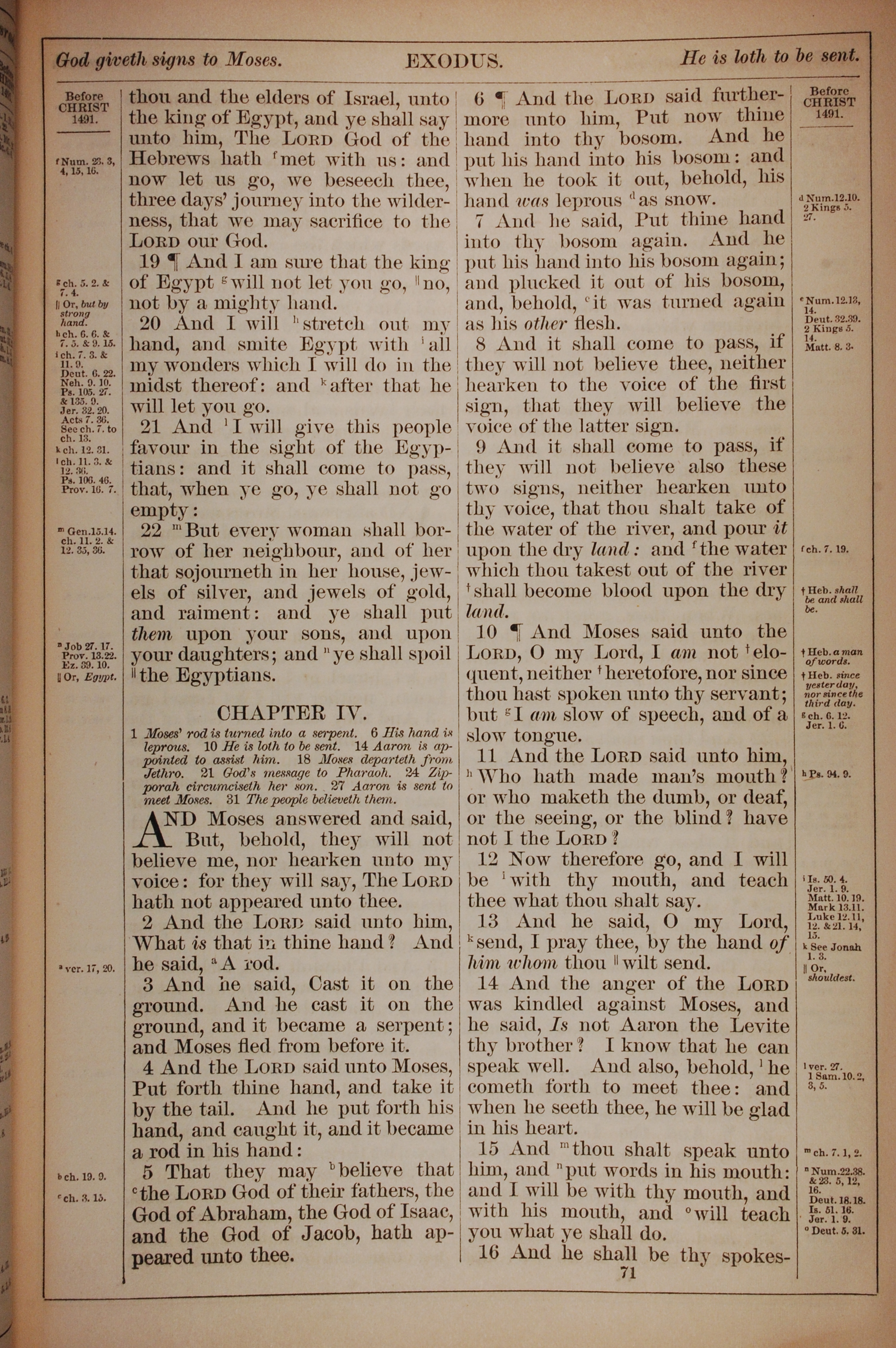 1882年Holy Bible 出埃及記 3 章 18 節到 4 章 16 節