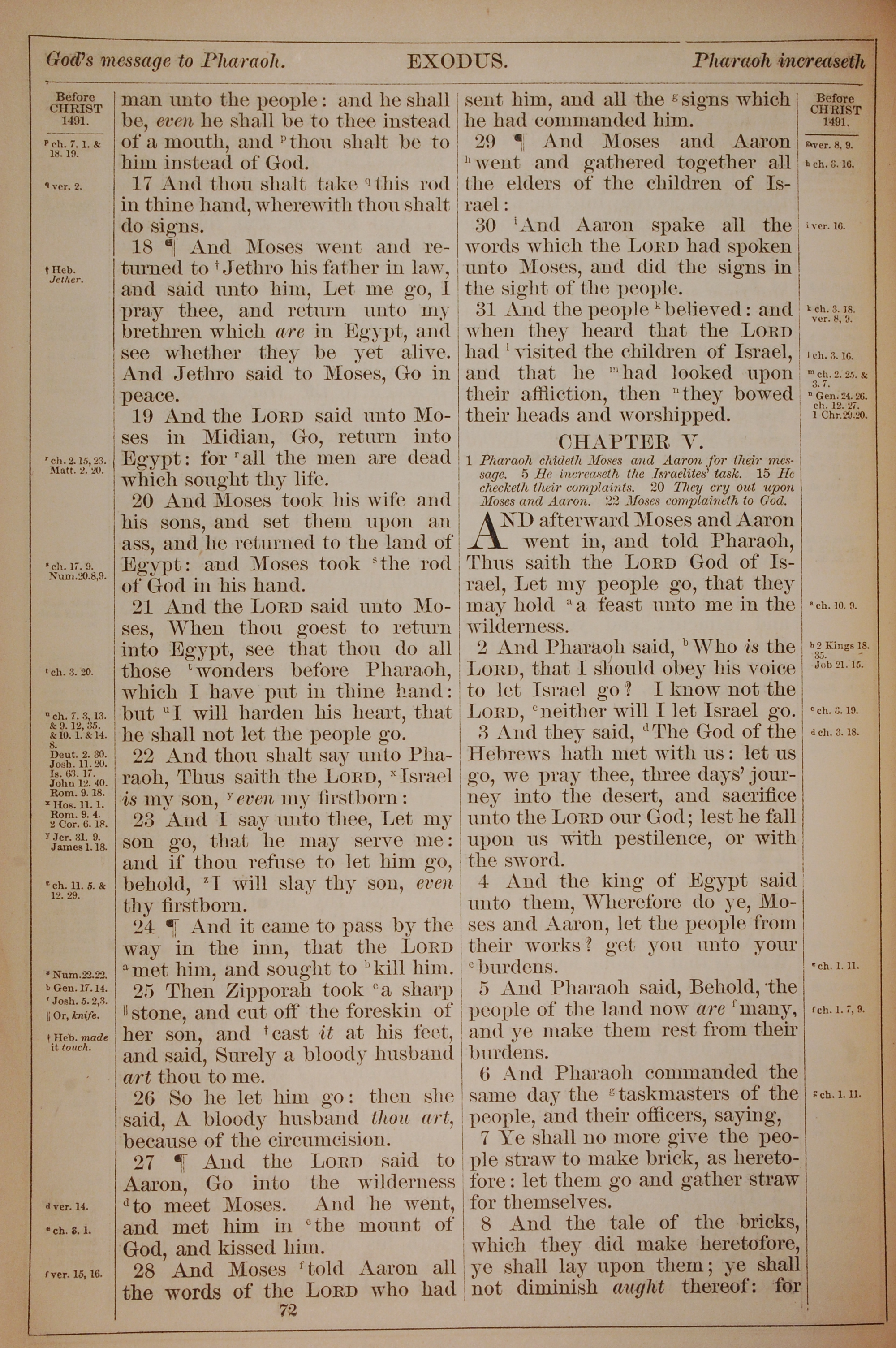 1882年Holy Bible 出埃及記 4 章 17 節到 5 章 8 節