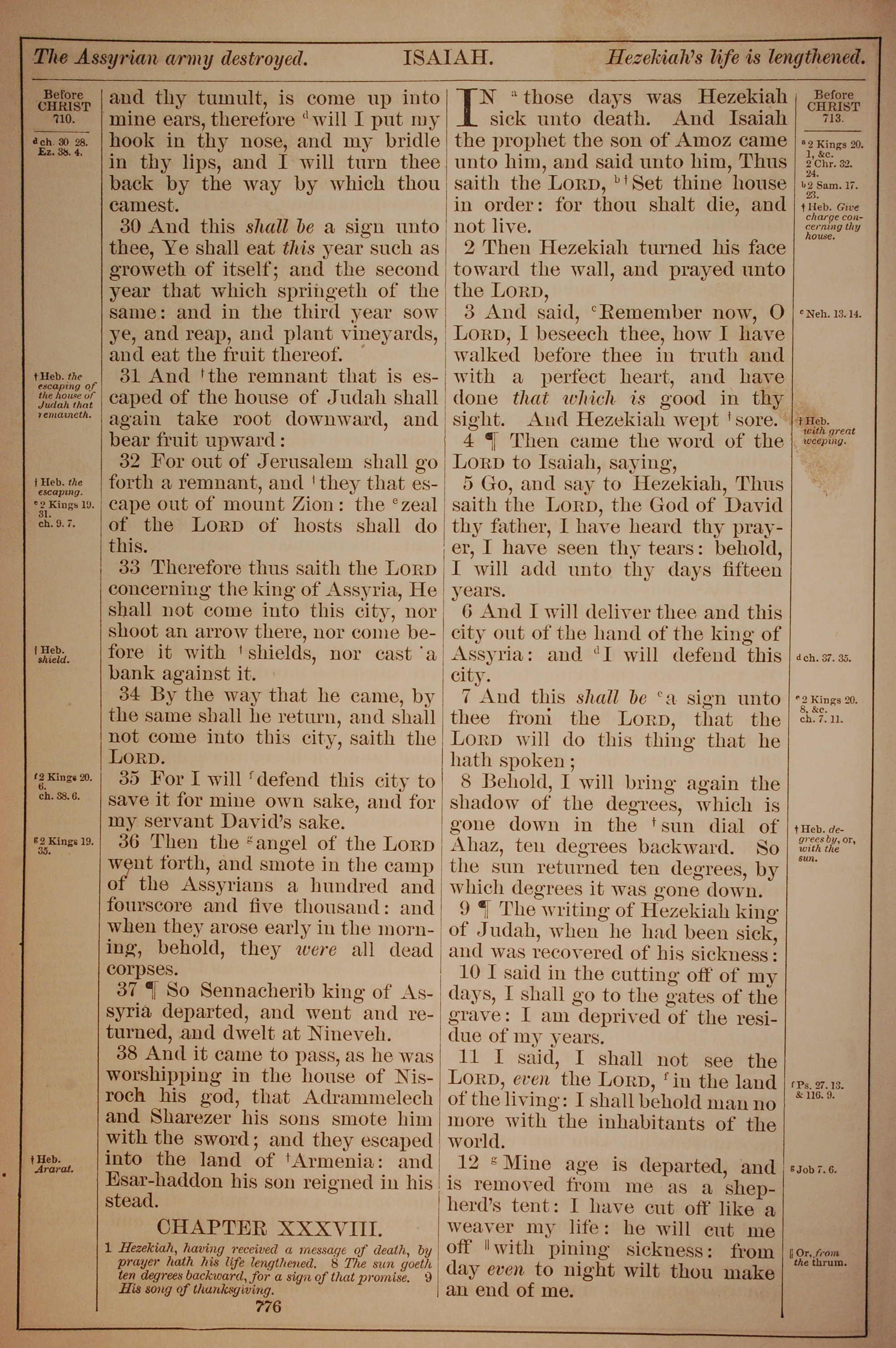 1882年Holy Bible 以賽亞書 37 章 30 節到 38 章 12 節